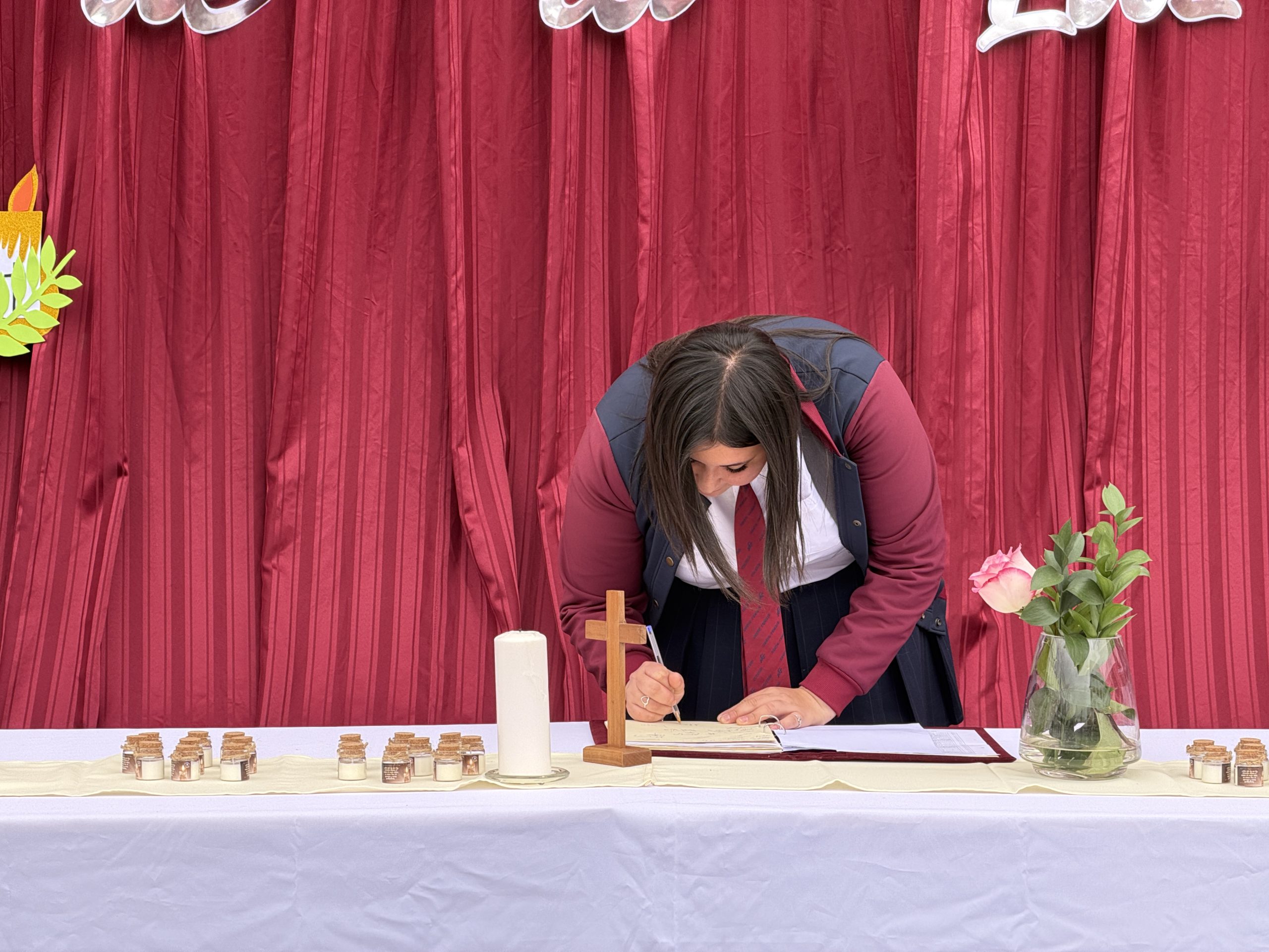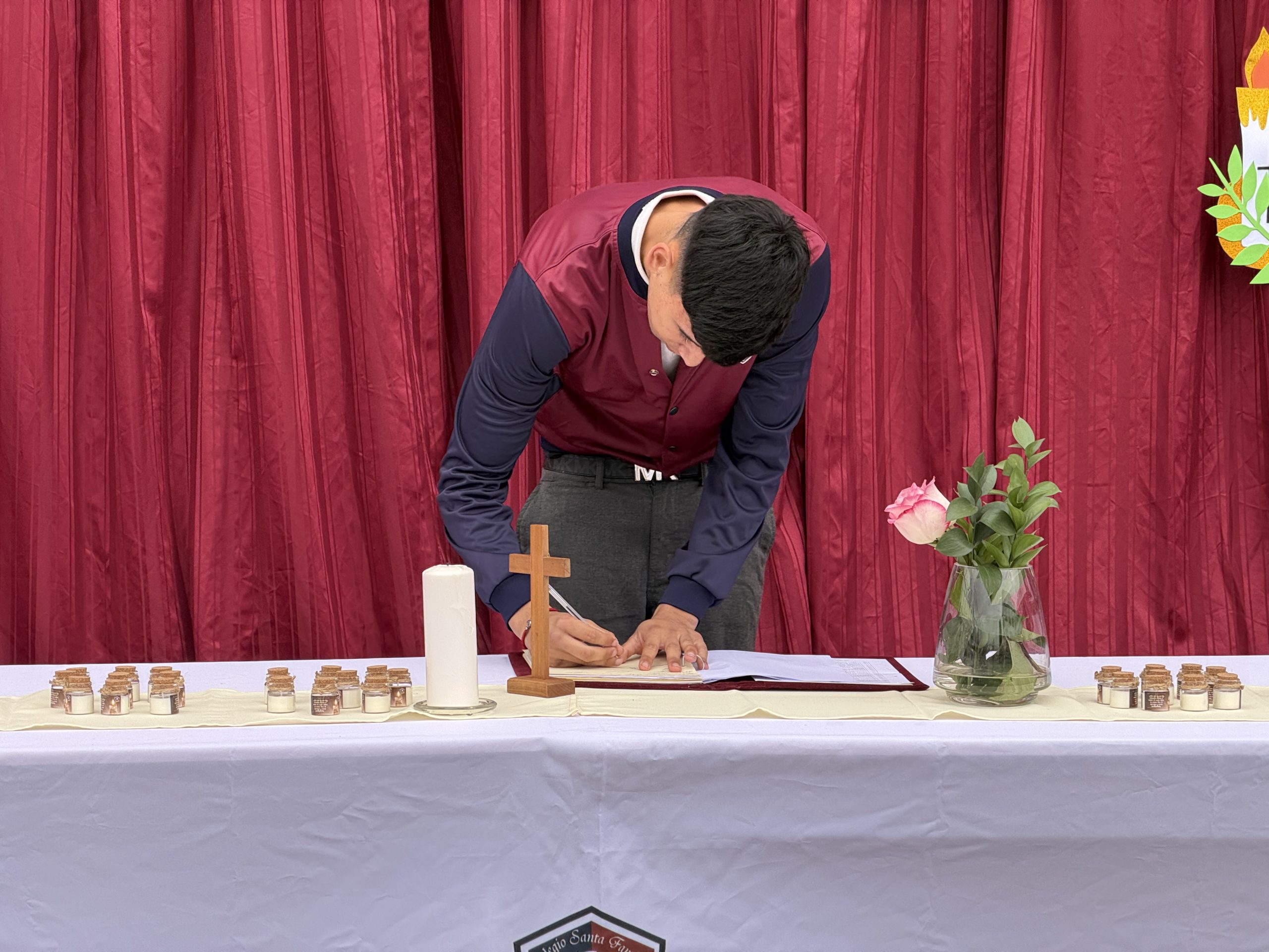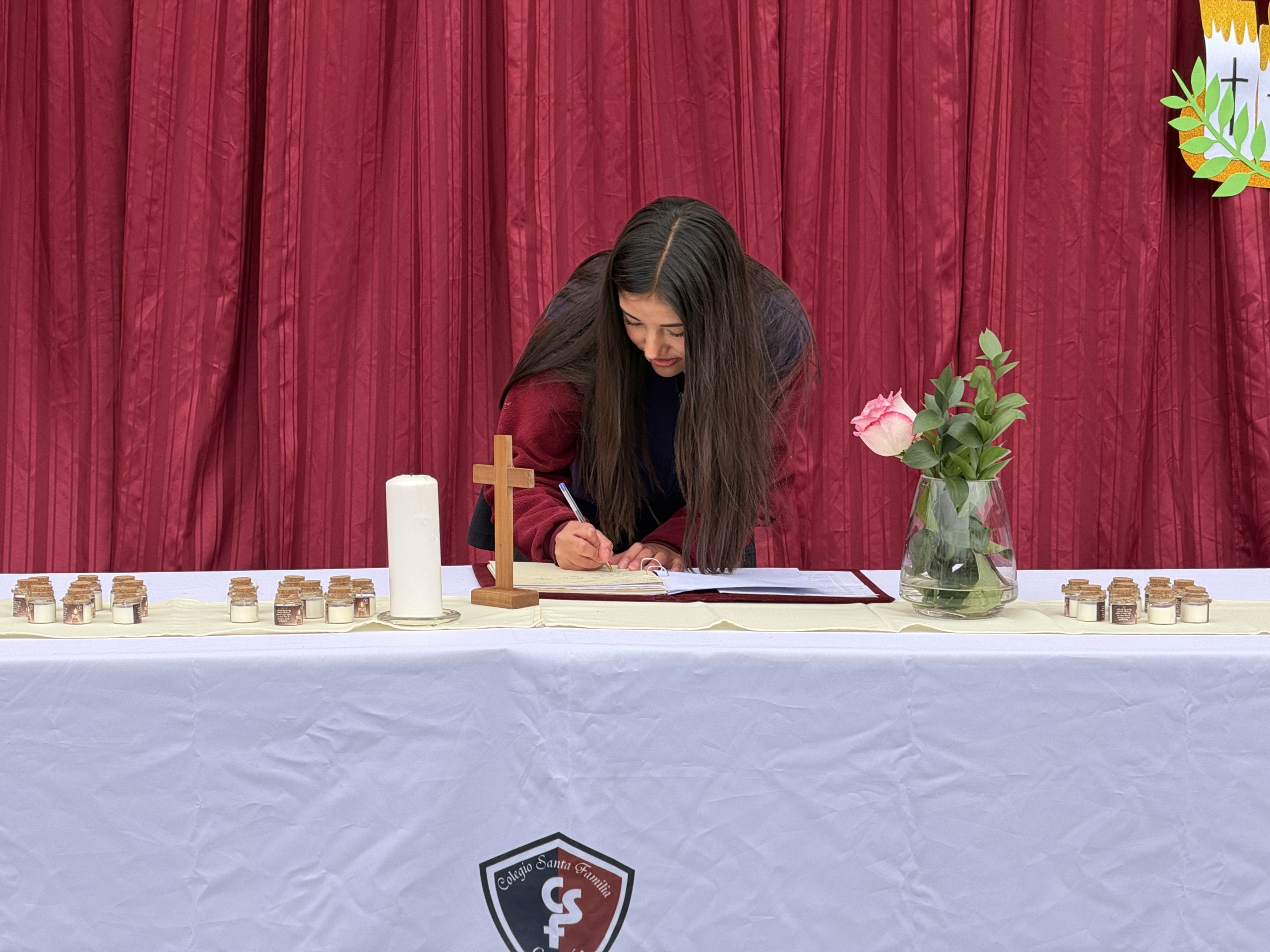 Un hito simbólico y profundamente significativo fue la firma del Libro de Registro, instancia donde cada estudiante deja su nombre marcado en la historia del Colegio Santa Familia, como testimonio del legado que han construido durante su paso por estas aulas.
