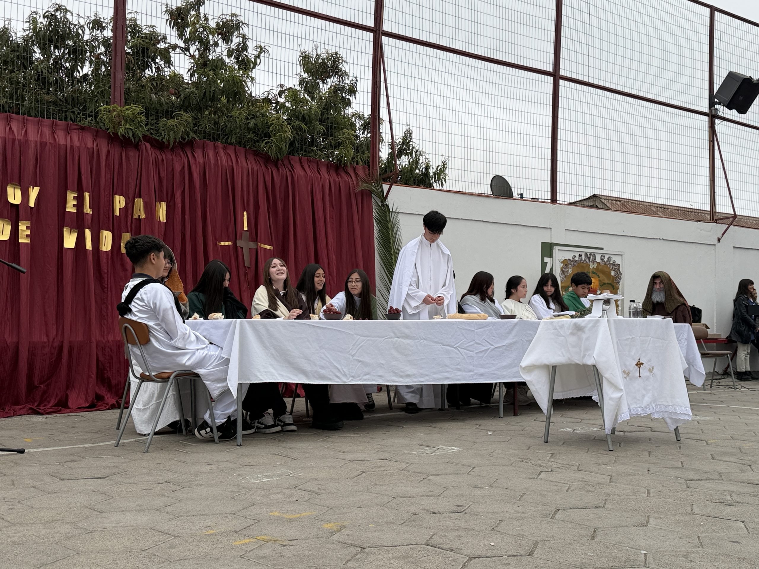 Durante la jornada, se recordó con especial énfasis el Jueves Santo, día en que Jesús instituyó la Eucaristía y el Sacerdocio. En nuestro colegio, los alumnos del 2° medio B realizaron una representación de la Última Cena , mientras nuestro Diácono, don Mariano Martínez, bendijo los altares que cada curso preparó para compartir el pan y las uvas.