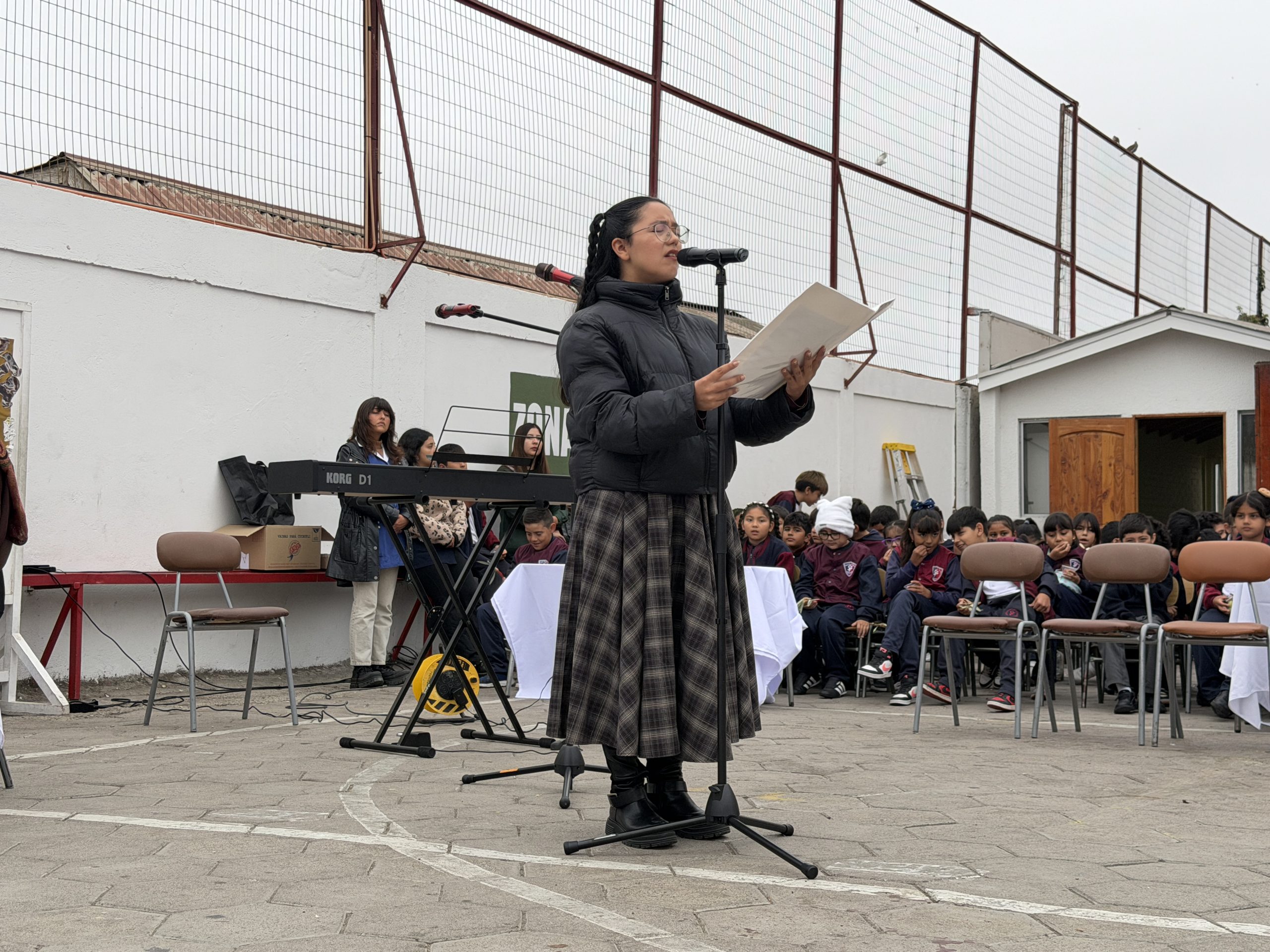 La música fue un pilar fundamental para elevar la oración. El docente Nicolás Díaz, la docente María Consuelo Ponce y el estudiante Javier Villablanca unieron sus voces en una interpretación que acompañó el sentido de la celebración. Asimismo, la docente Daniela Casanova ofreció un momento de reflexión a través de su canto, recordándonos que Dios entrega la fuerza necesaria en el momento preciso.