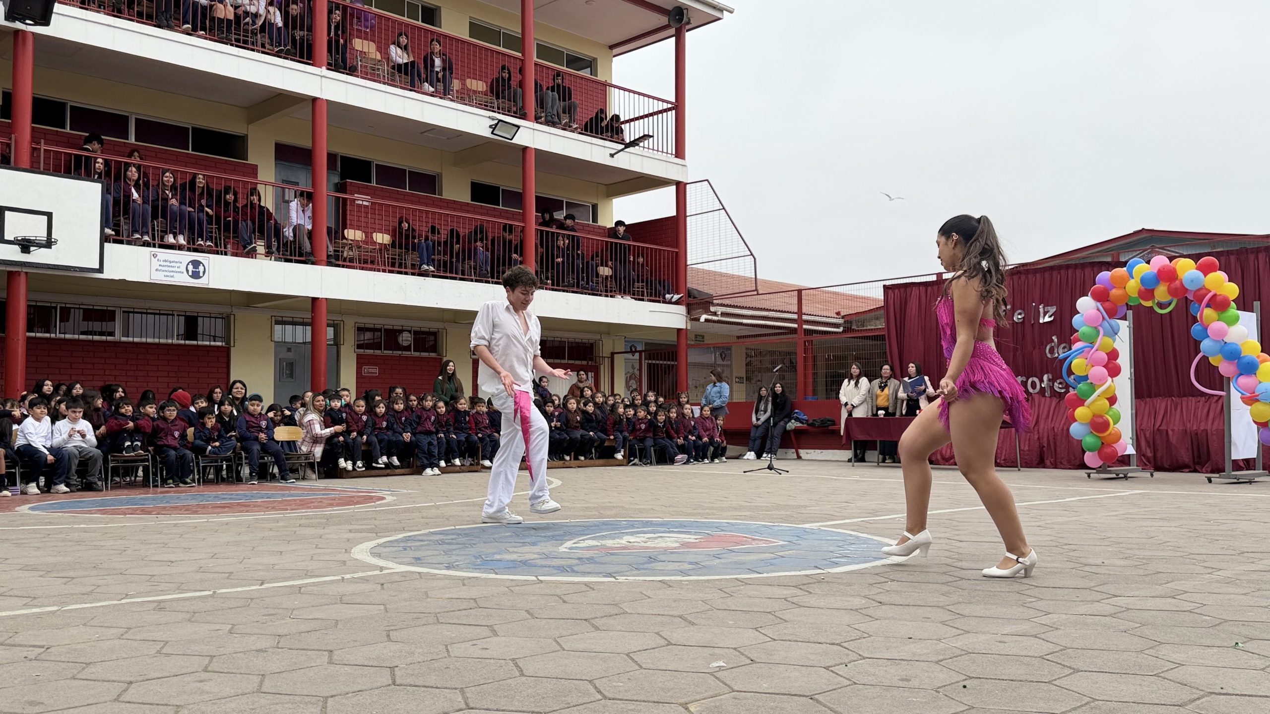 Destacaron interpretaciones como la “Poesía a mi Profesora” del segundo básico, los coloridos bailes K-pop y tropicales de enseñanza básica y media, el alegre “Waka Waka” del segundo básico, la danza pascuense de las Hermanas Cortés Medero, y la divertida presentación “La Máscara” a cargo de Benjamín Juica, entre muchos otros números que llenaron de energía el escenario.