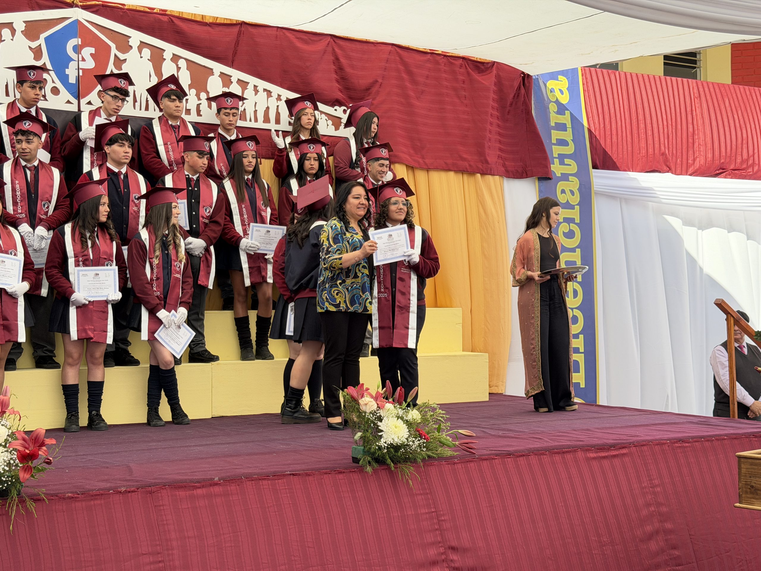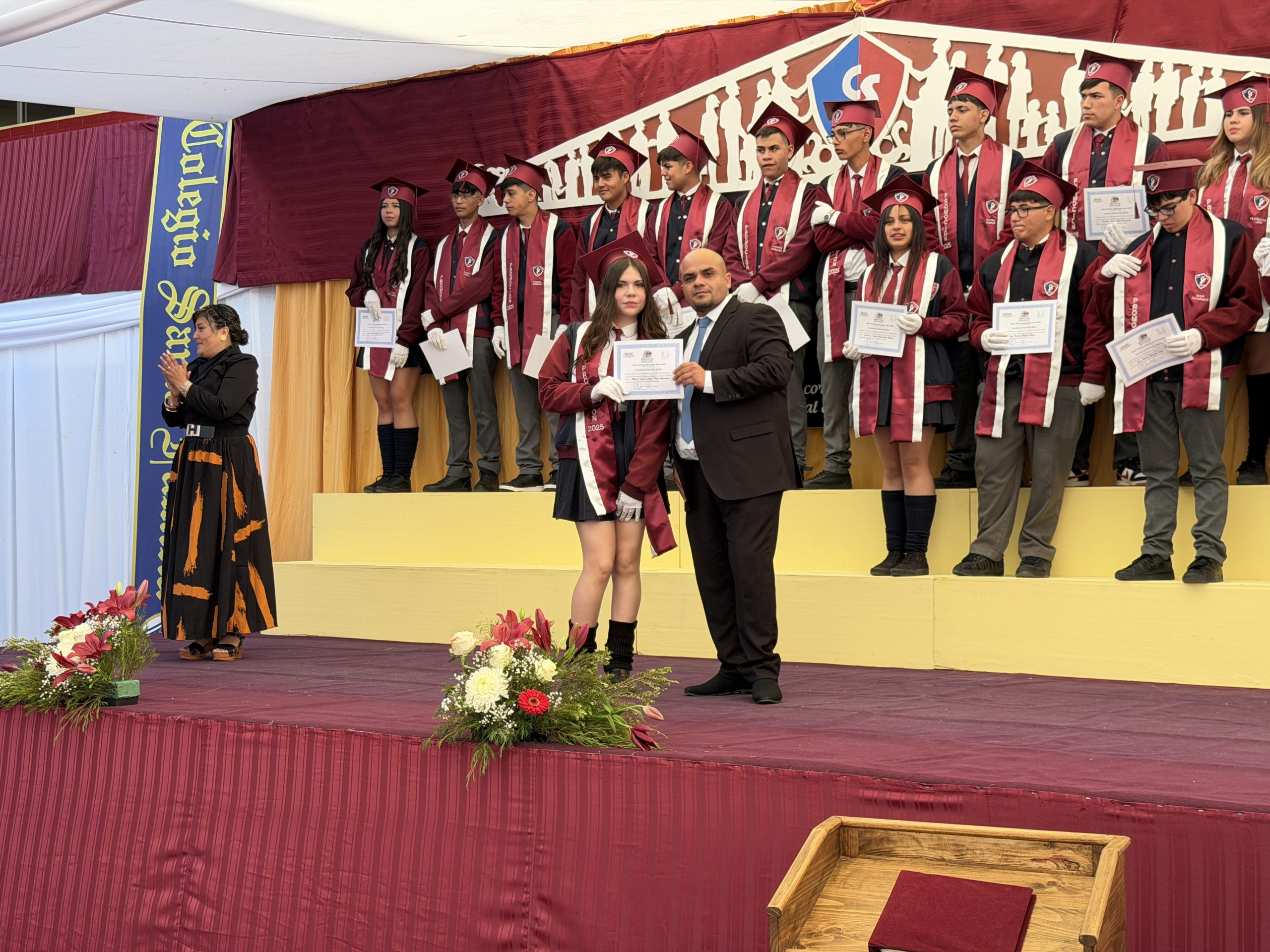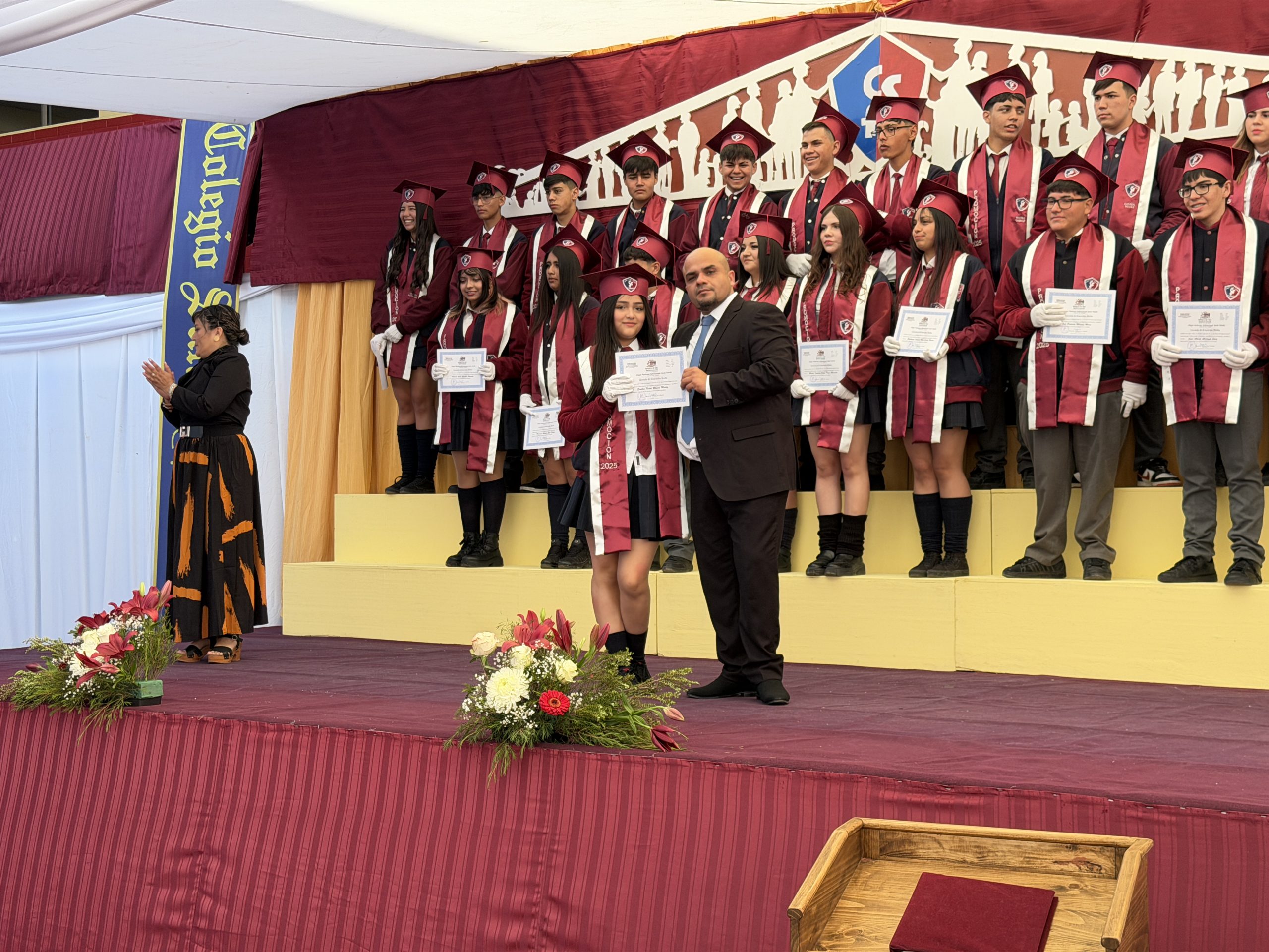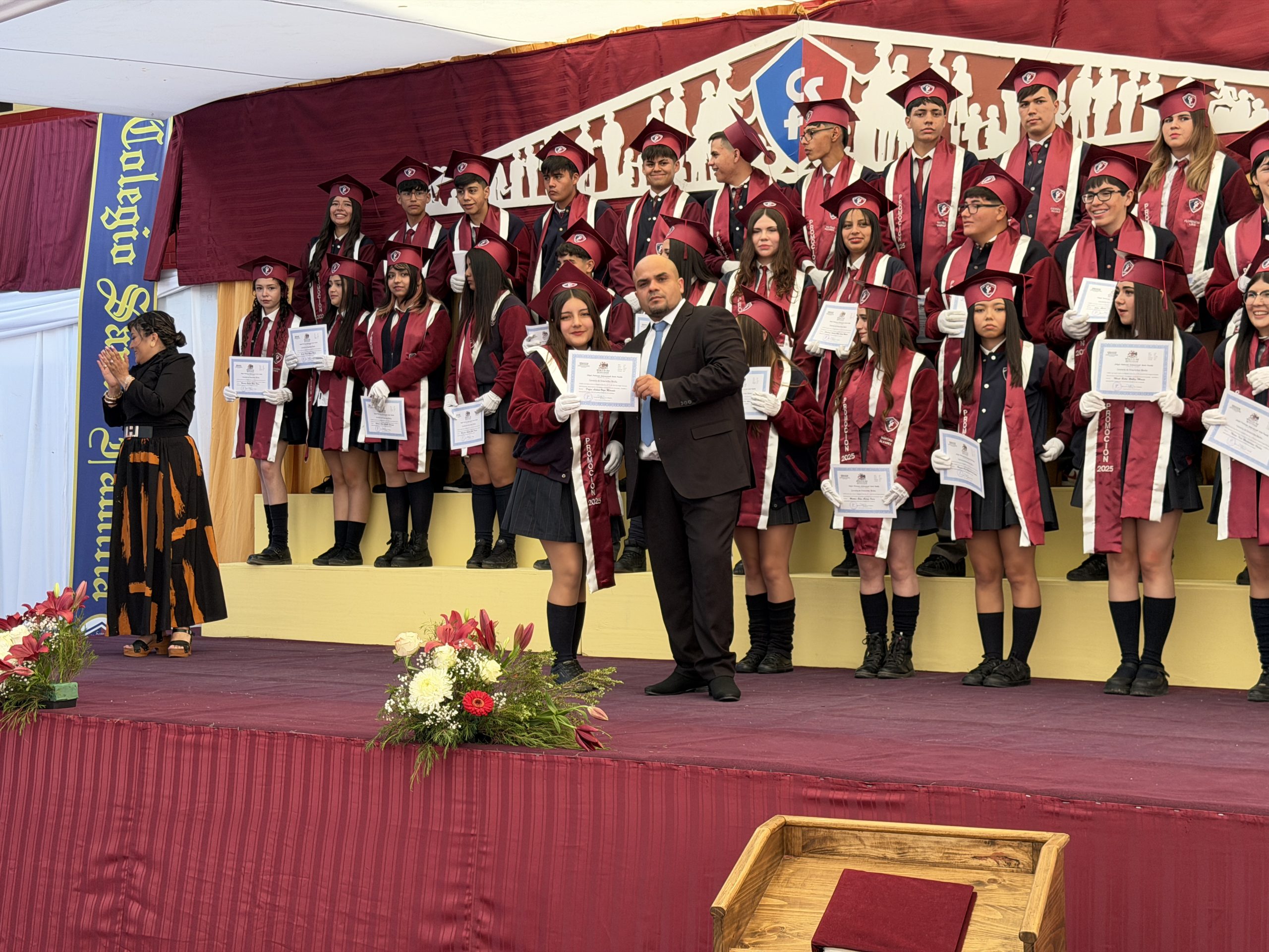 La ceremonia comenzó con una reflexión profunda: la búsqueda de nuestra propia «estrella» y el sentido de nuestra misión en el mundo. Con el orgullo de haber formado jóvenes de valores intransables, recibimos entre aplausos a los estudiantes del IV° Medio A, acompañados por su profesora jefe, la Sra. Yalena Gómez Godoy, y al IV° Medio B, guiados por su profesor jefe, el Sr. Mauricio Salinas Díaz.