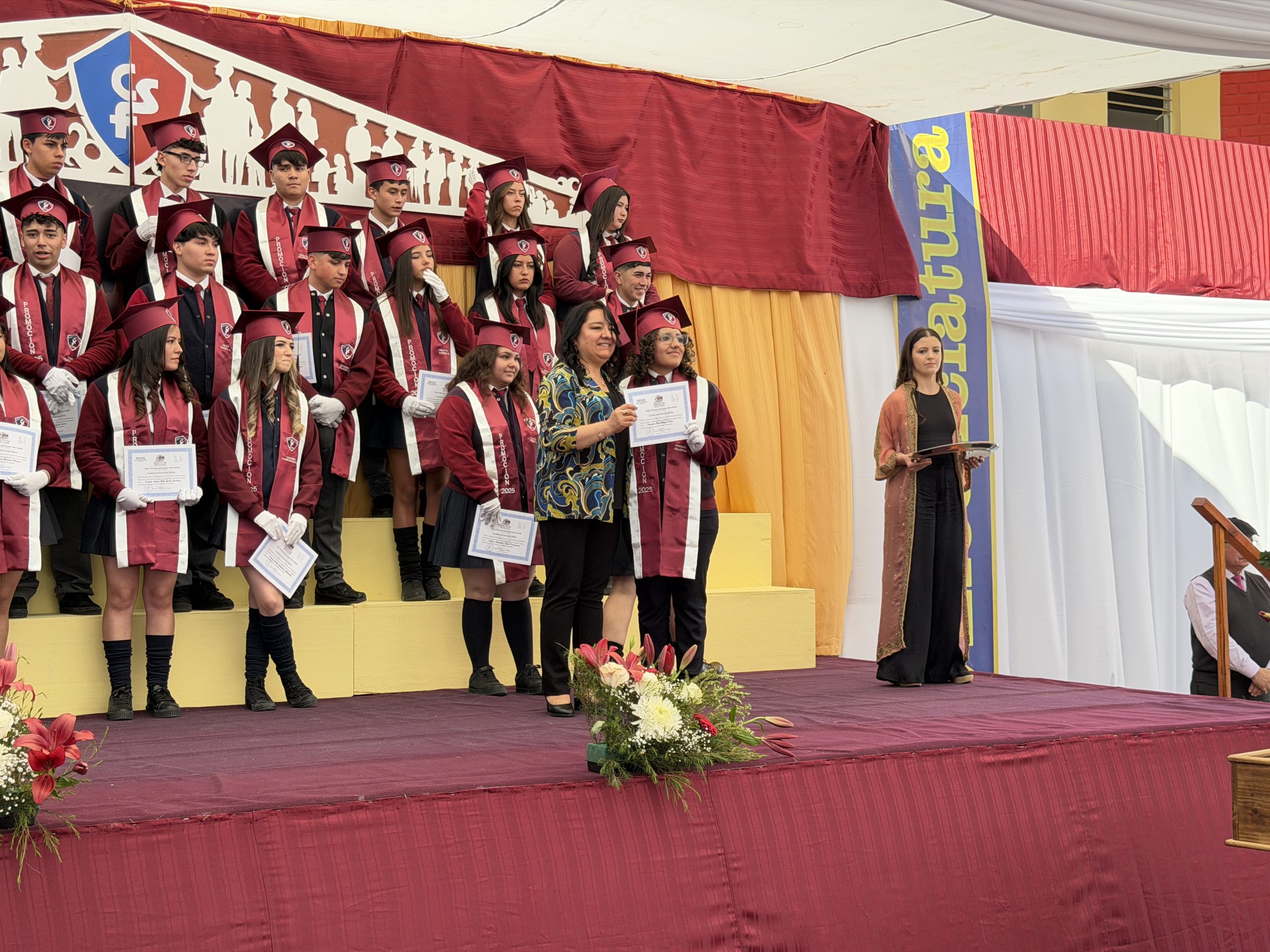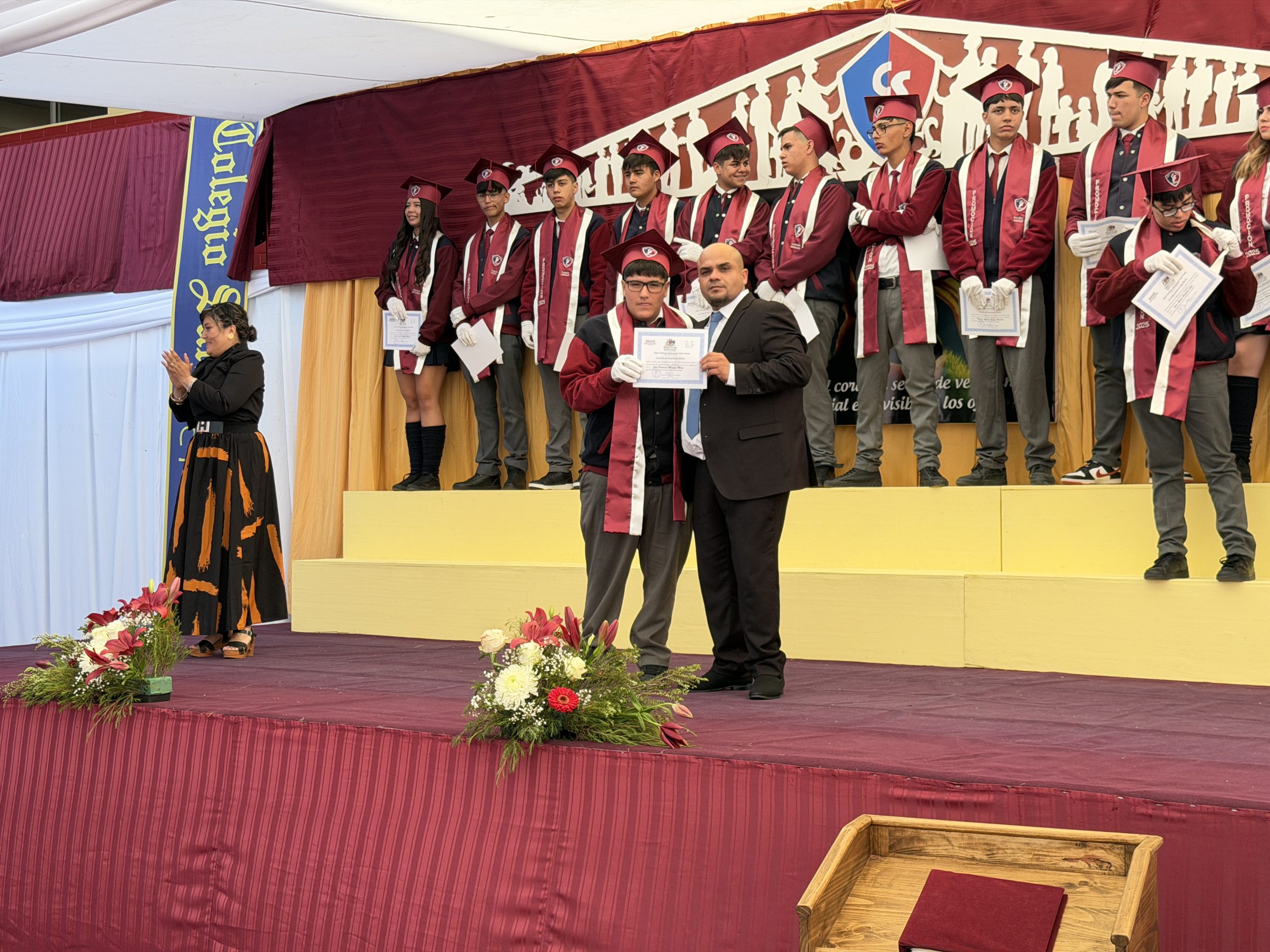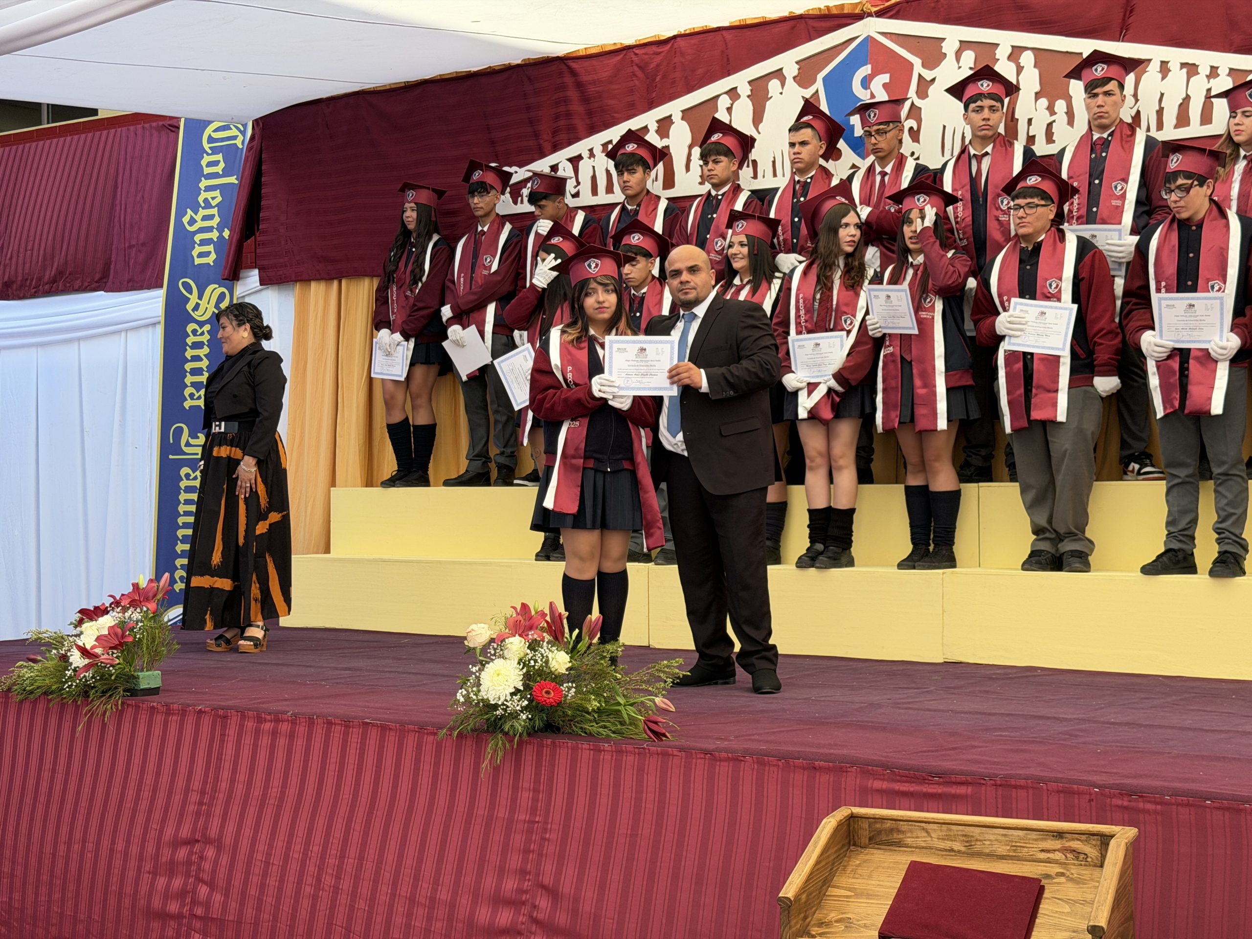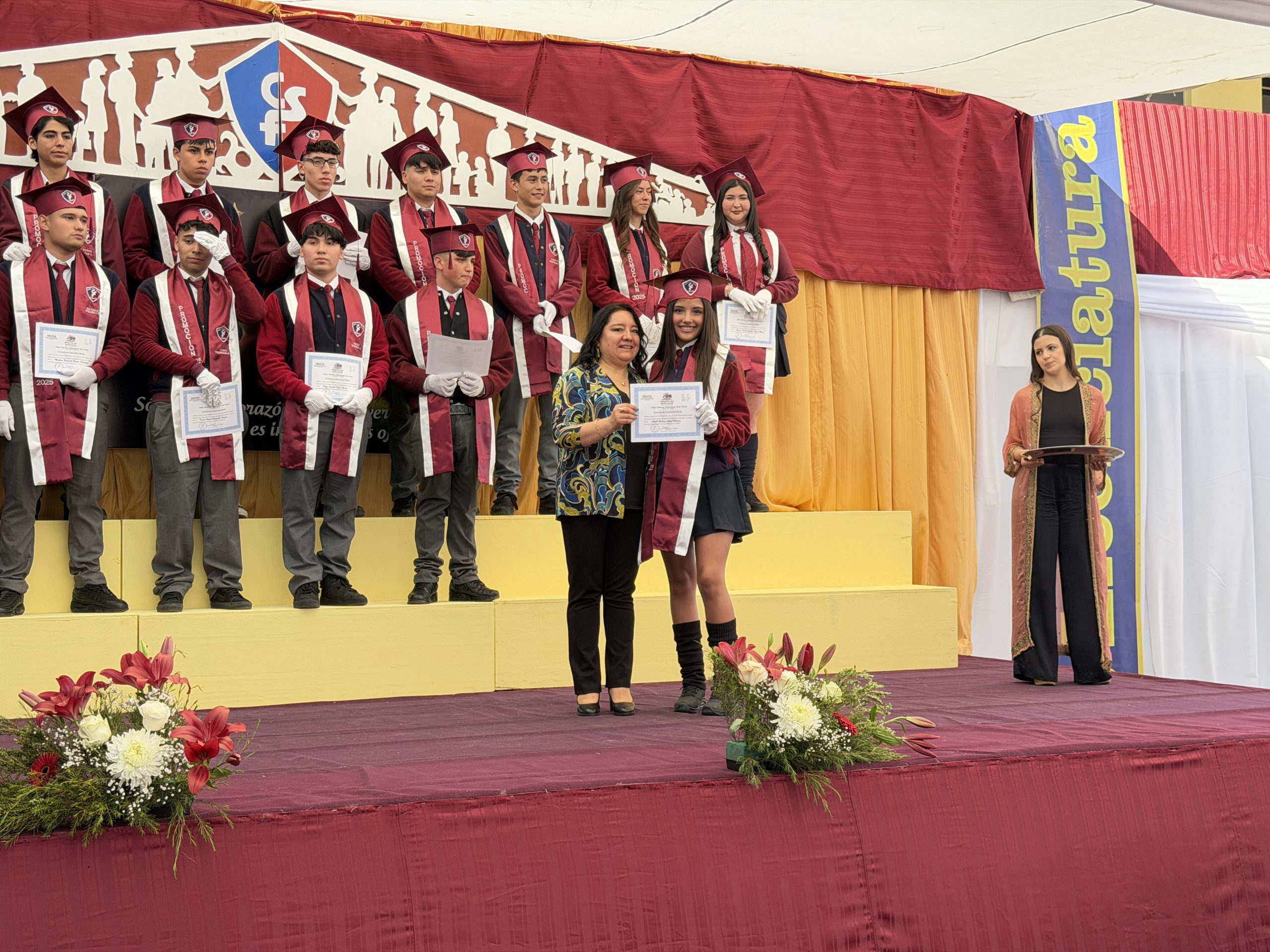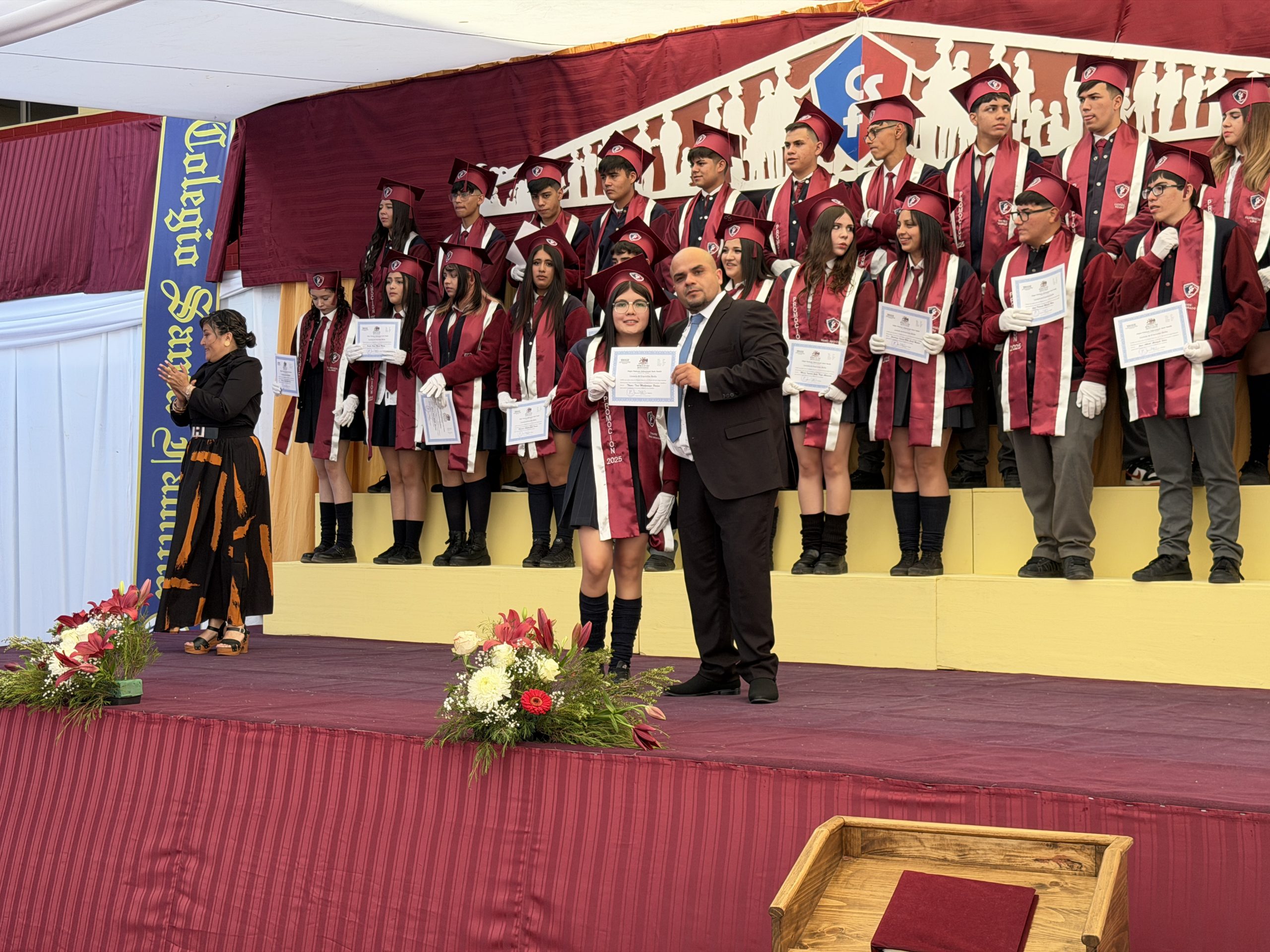 La ceremonia comenzó con una reflexión profunda: la búsqueda de nuestra propia «estrella» y el sentido de nuestra misión en el mundo. Con el orgullo de haber formado jóvenes de valores intransables, recibimos entre aplausos a los estudiantes del IV° Medio A, acompañados por su profesora jefe, la Sra. Yalena Gómez Godoy, y al IV° Medio B, guiados por su profesor jefe, el Sr. Mauricio Salinas Díaz.
