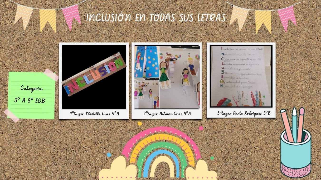 El 04 de noviembre se conmemora el día nacional de la educación especial, fecha en que se celebra una actividad fundamental para la inclusión. Es por esto, que el programa de integración escolar invita a los diferentes niveles del establecimiento a concursar con temáticas enfocadas en la Inclusión.