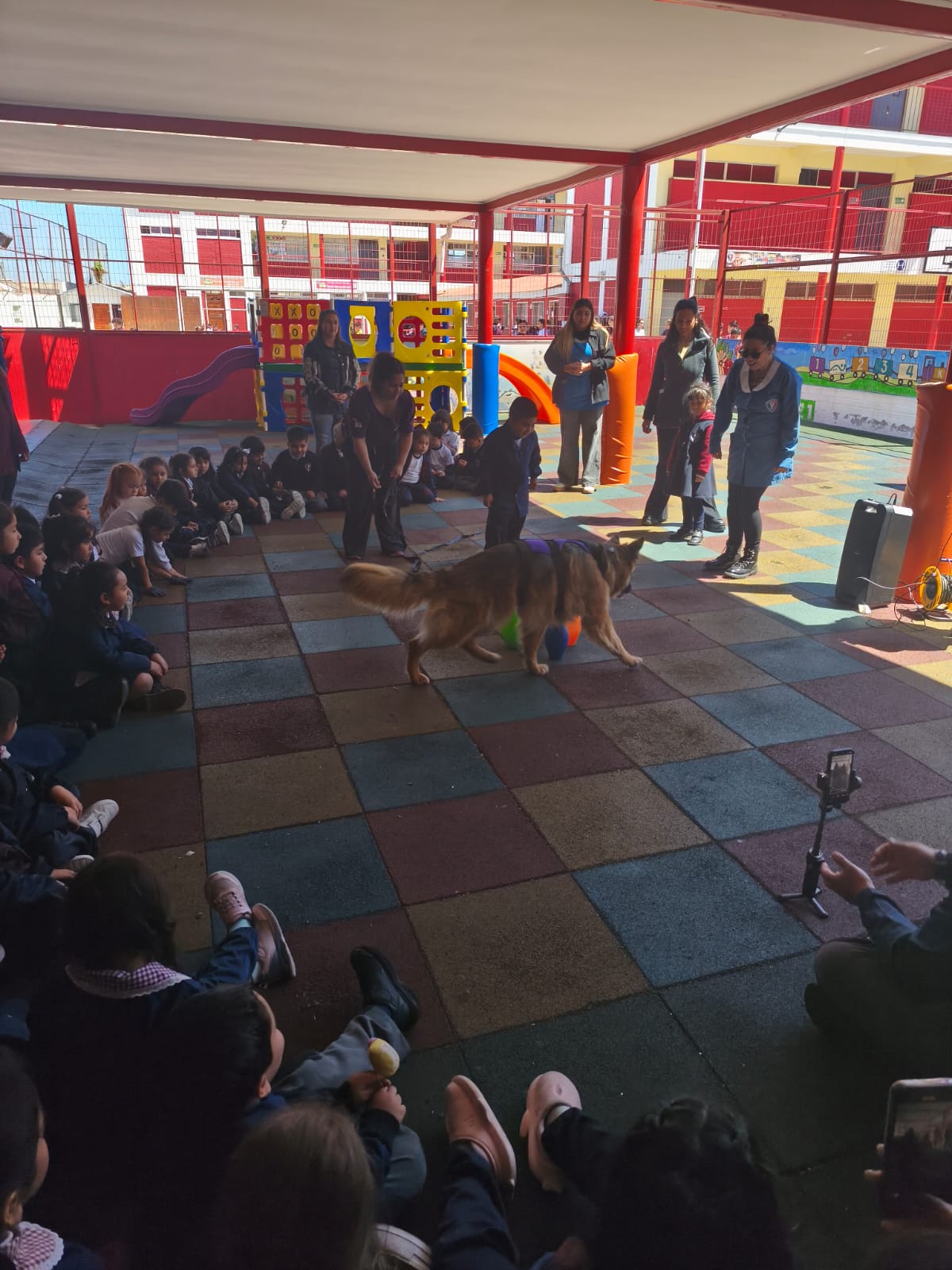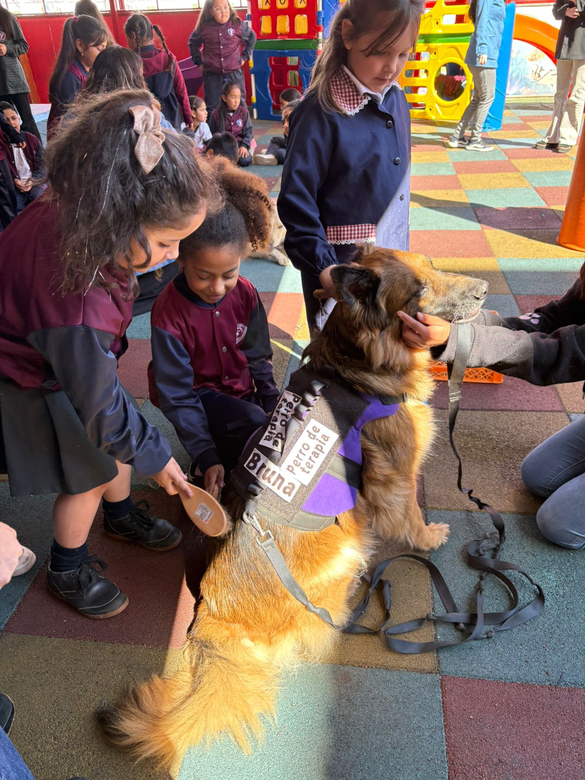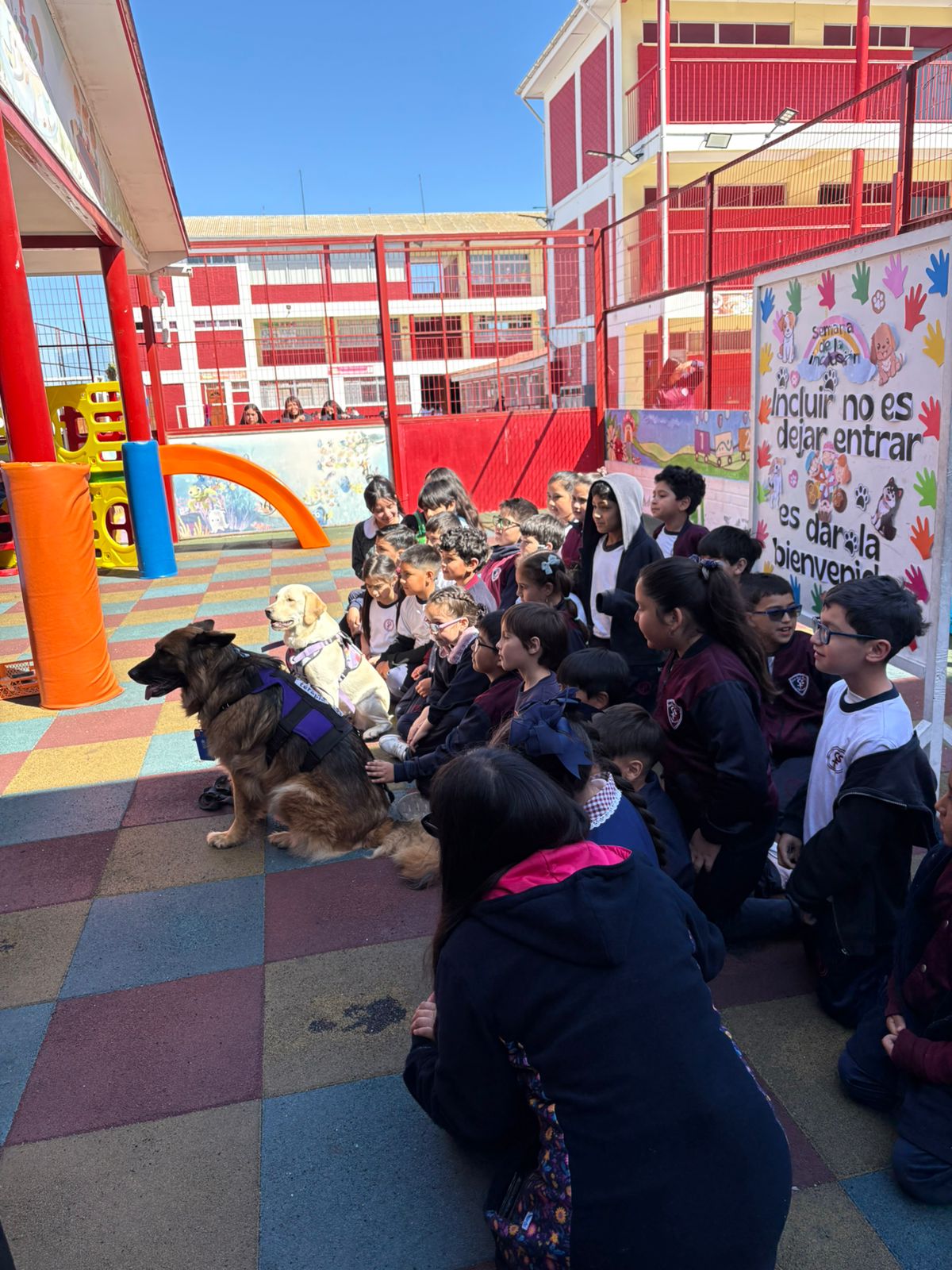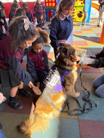 Durante la segunda jornada, el sector de Prebásica del colegio se llenó de alegría con la visita de los Dogtores de Terapeandog, un equipo profesional especializado en intervenciones asistidas con perros.