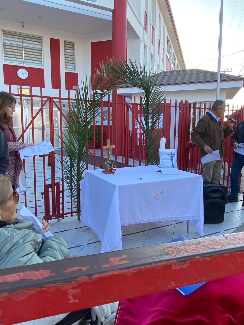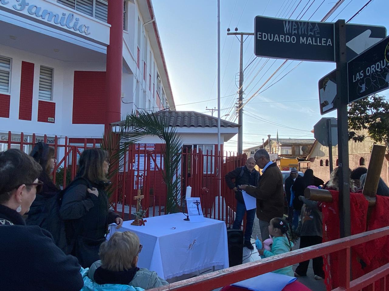 La caminata comenzó en nuestro establecimiento y contó con la participación de apoderados, estudiantes, funcionarios y vecinos del sector, quienes, con respeto y devoción, recorrieron juntos el camino hacia la parroquia. Esta peregrinación fue guiada por don Germán Rojas y su familia, quienes, con gran compromiso, acompañaron cada momento del trayecto. La jornada concluyó con la Adoración de la Santa Cruz y la celebración litúrgica de la Pasión del Señor, en un ambiente cargado de espiritualidad y comunión.
