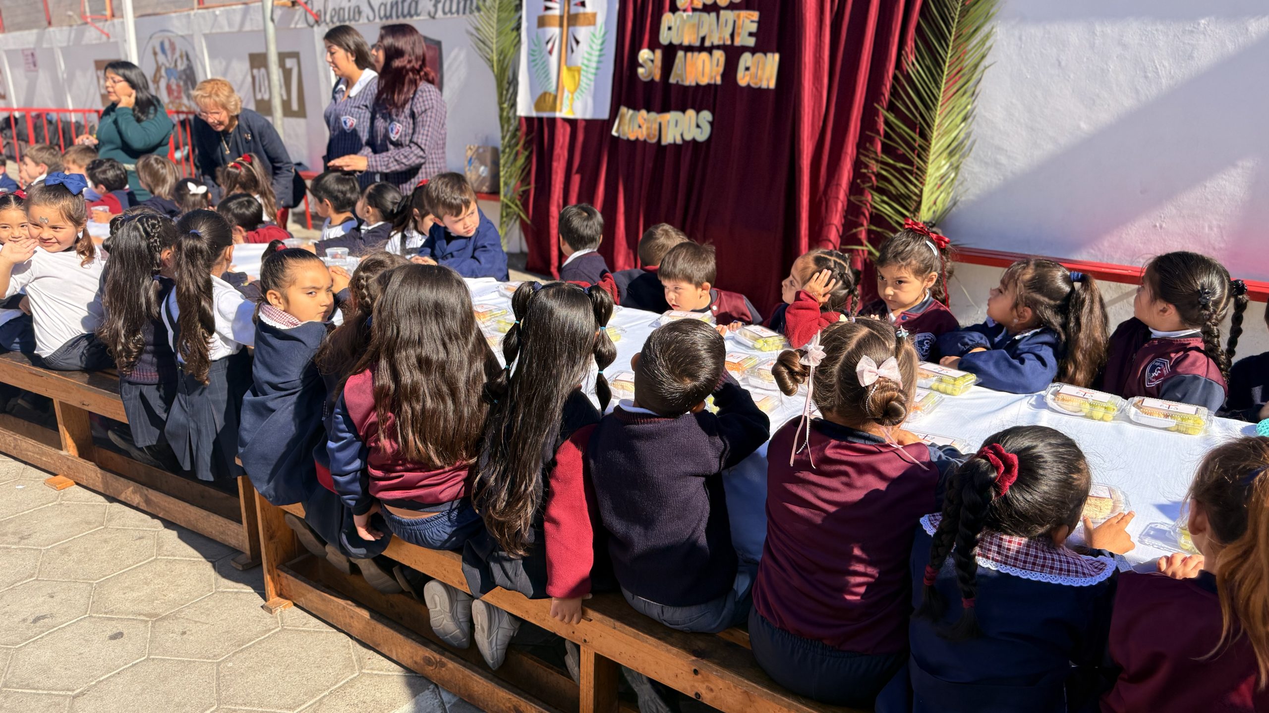 El jueves 17 de abril, se celebró la tradicional Cena de Pan y Vino, organizada por el Departamento de Religión e Historia. Durante la mañana, nuestros estudiantes de enseñanza básica participaron en esta significativa ceremonia, recordando con respeto y recogimiento la Última Cena de Jesús junto a sus discípulos. En la tarde, los más pequeños de Pre Kínder y Kínder también vivieron esta experiencia, acompañados por sus compañeros de 3° básico B, quienes, con cantos llenos de alegría, aportaron un hermoso gesto de fraternidad e integración.