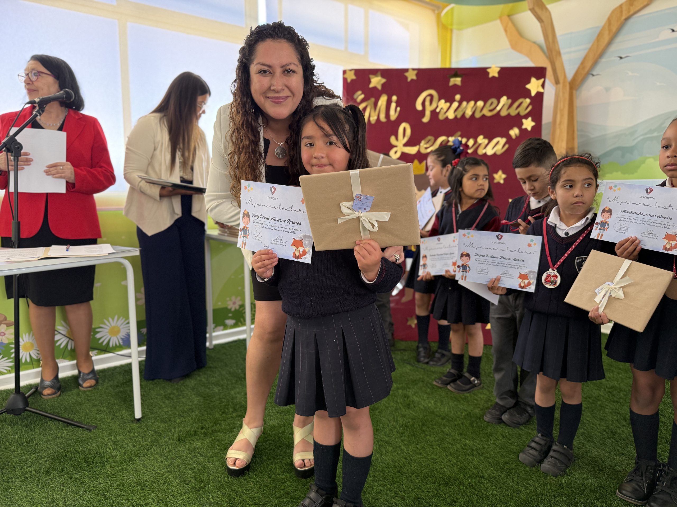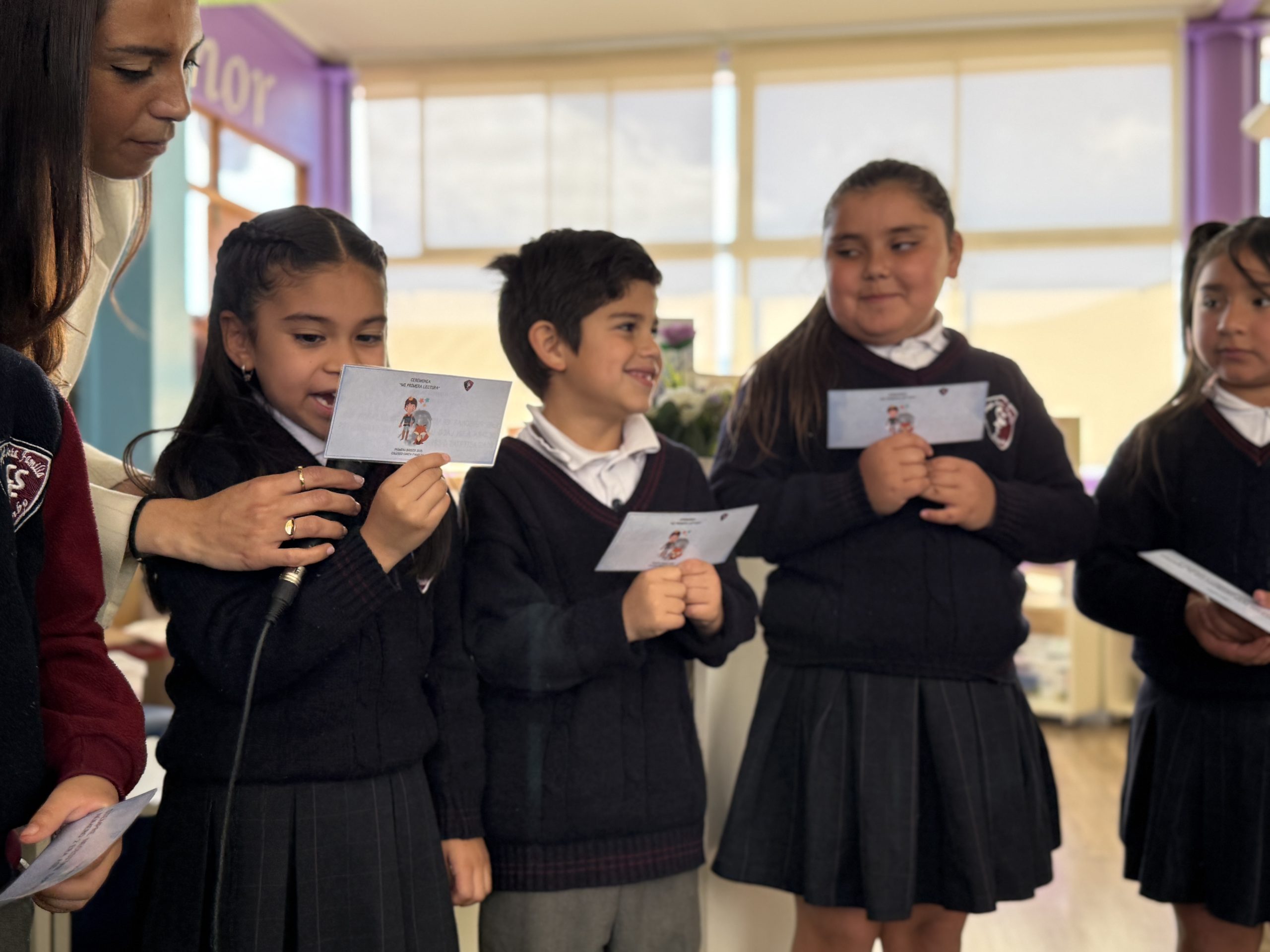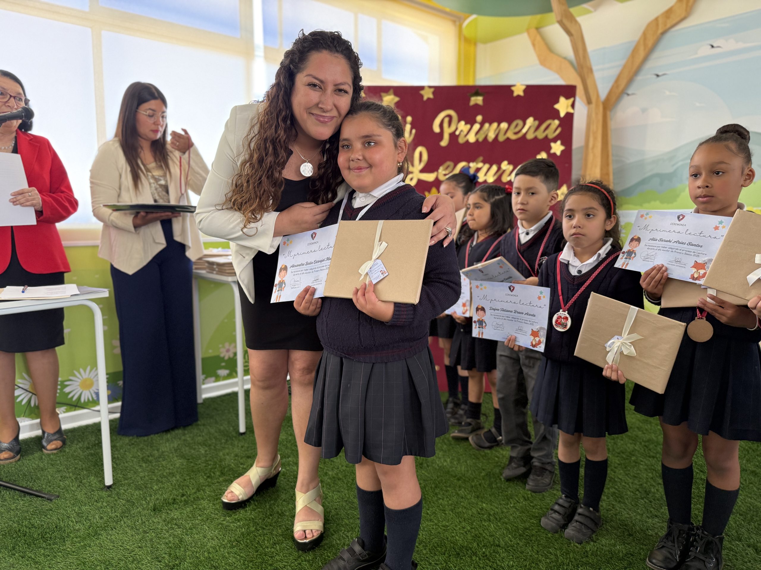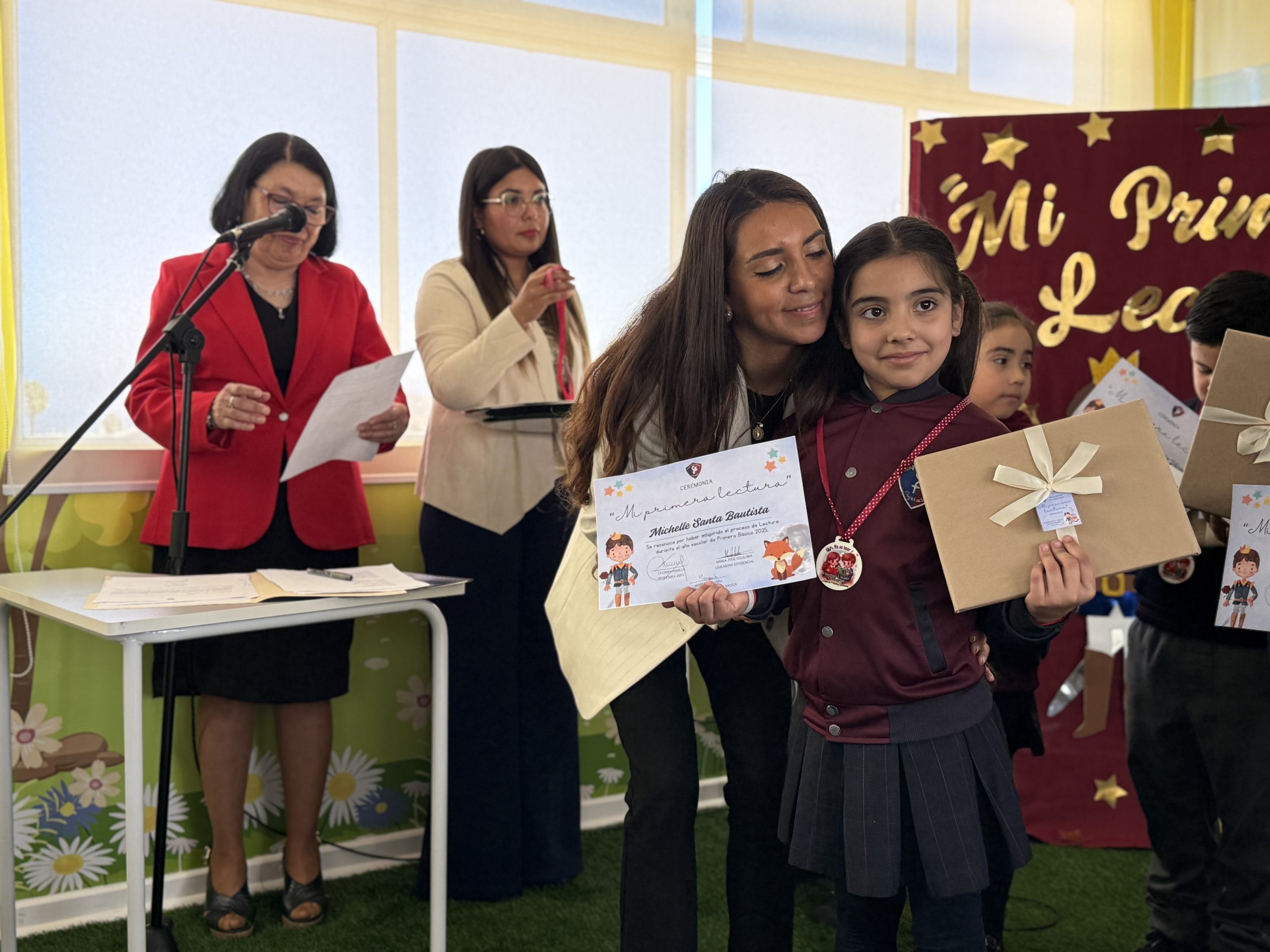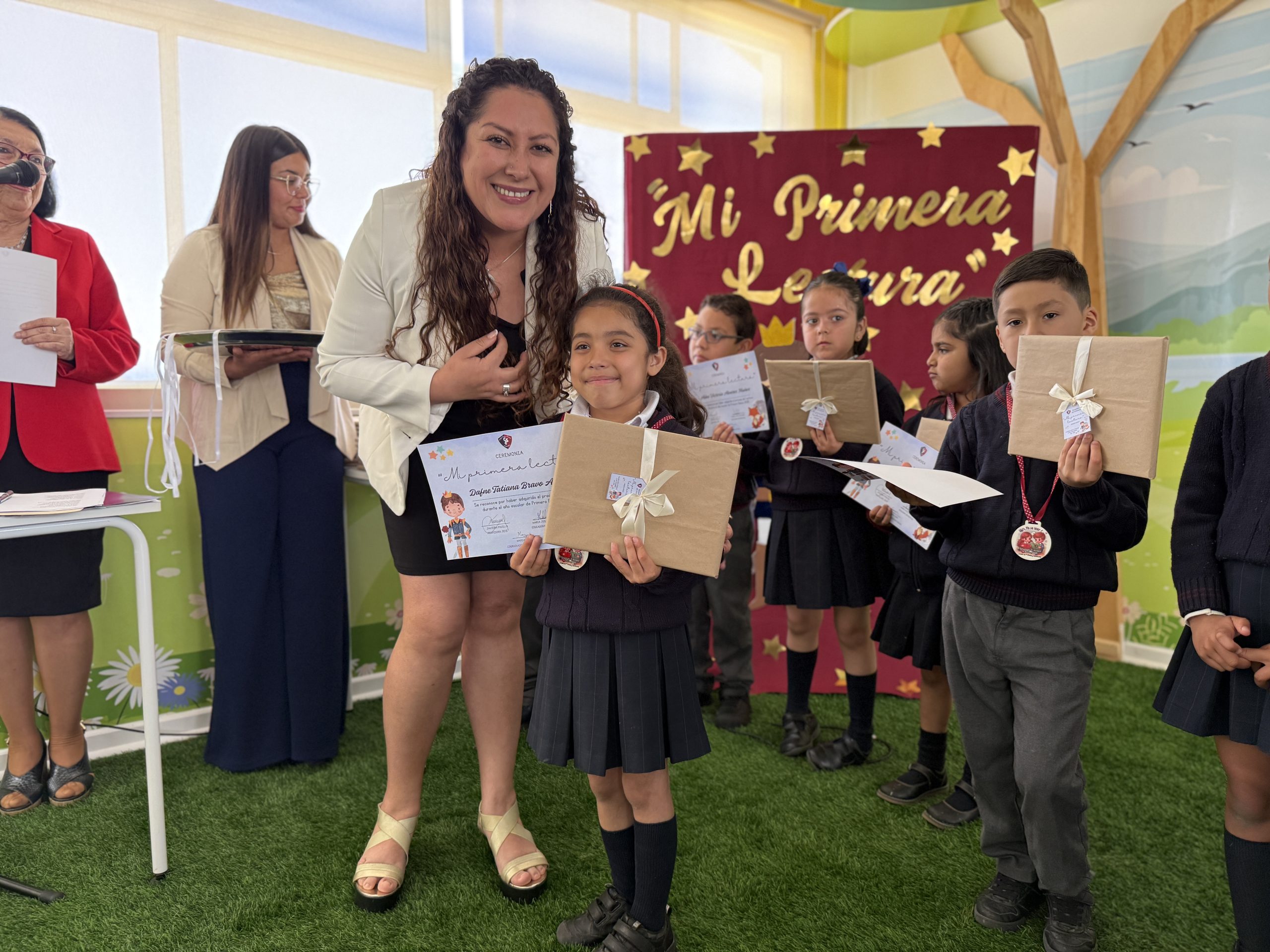 Reconocimiento al esfuerzo, acompañados por su profesoras jefes y el equipo de aula, los estudiantes recibieron diplomas y medallas de manos de nuestra Coordinadora de Ciclo, Sra. Margarita Vera. Estos símbolos no solo premiaron la adquisición de la lectura, sino también la perseverancia demostrada durante todo el proceso académico.