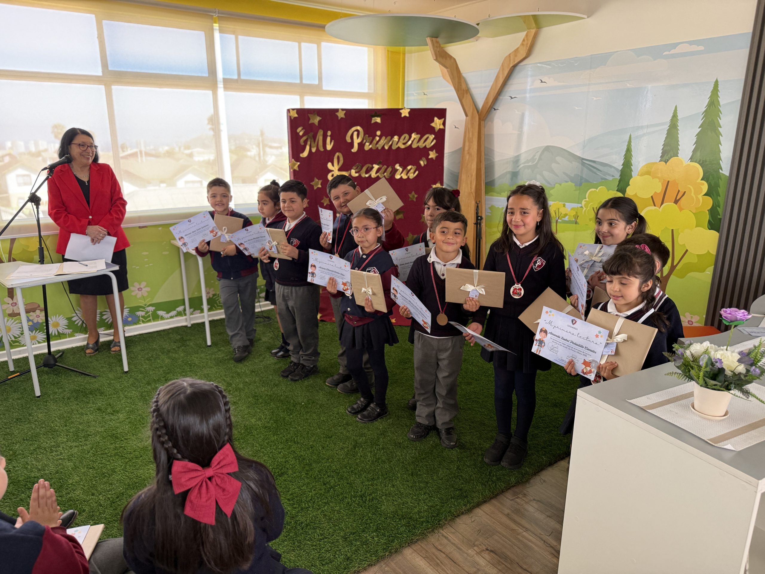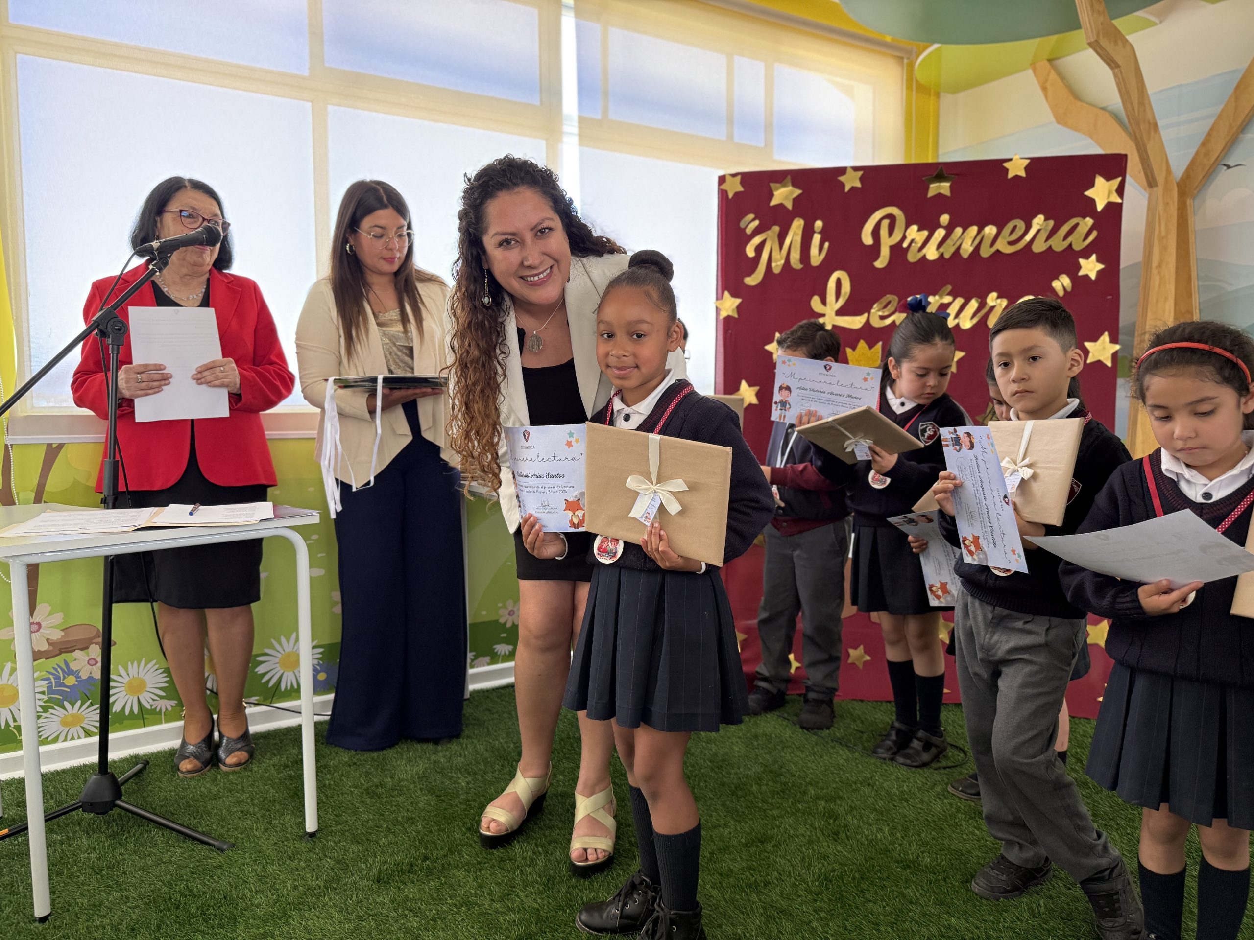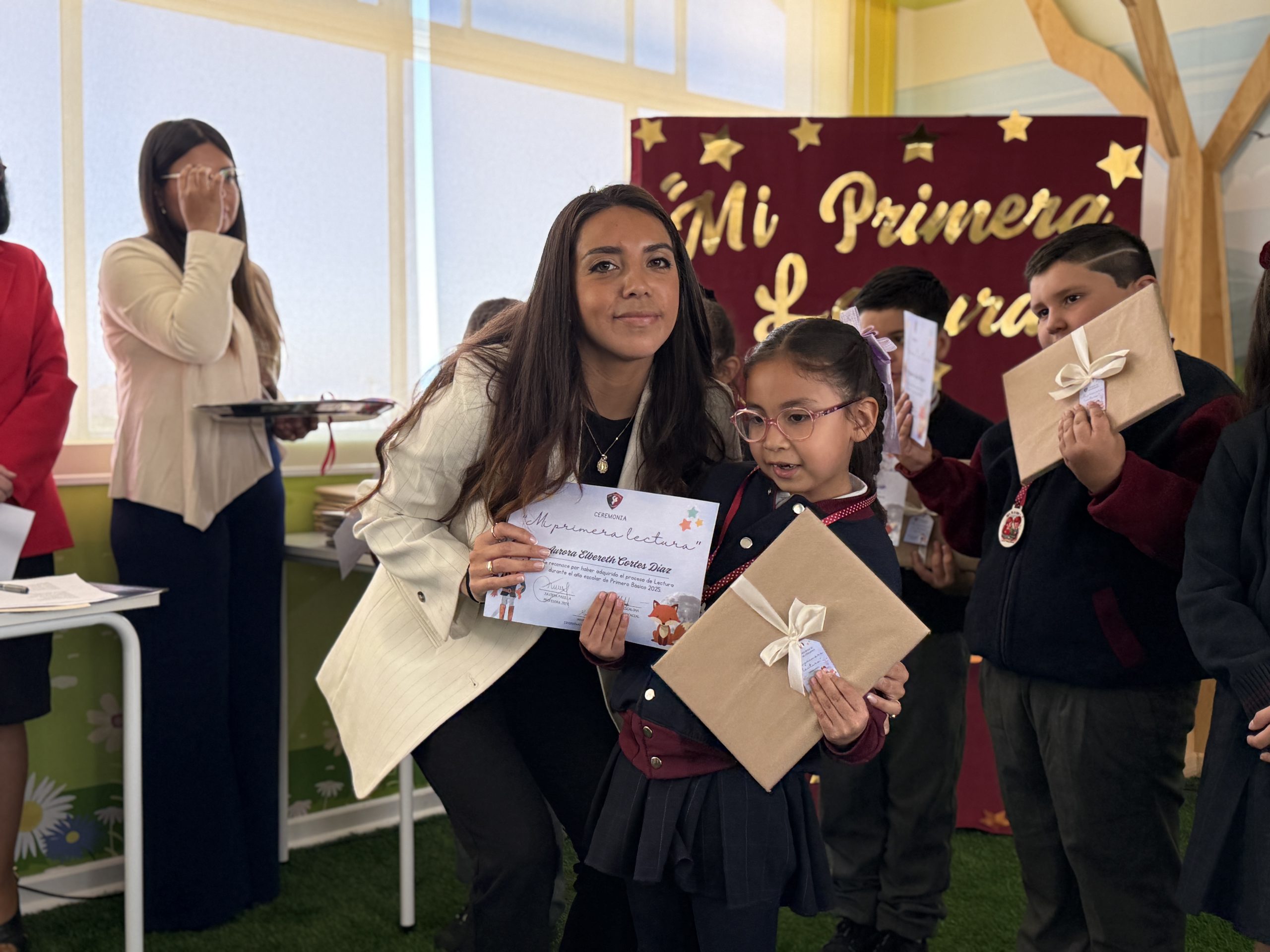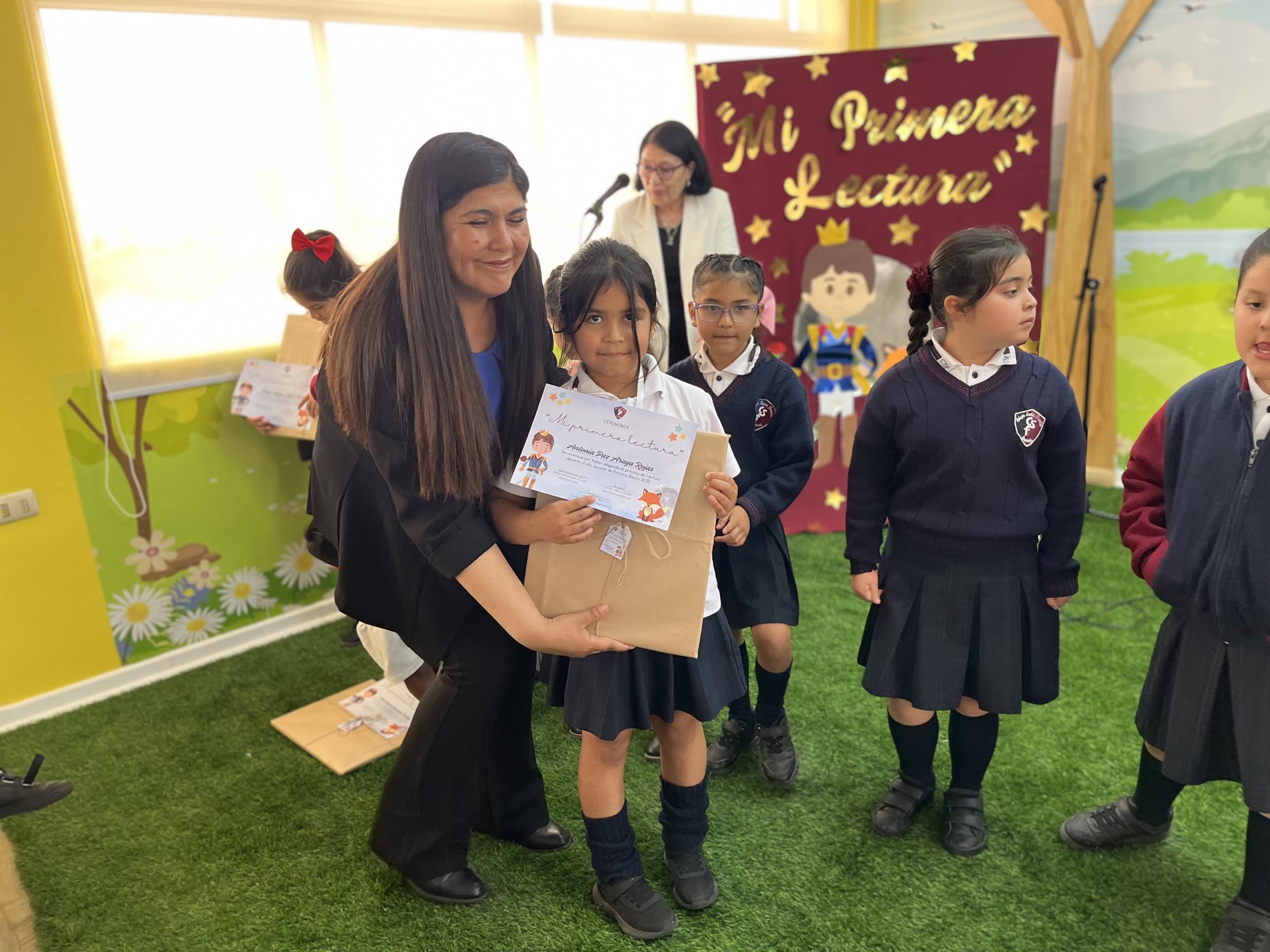 Reconocimiento al esfuerzo, acompañados por su profesoras jefes y el equipo de aula, los estudiantes recibieron diplomas y medallas de manos de nuestra Coordinadora de Ciclo, Sra. Margarita Vera. Estos símbolos no solo premiaron la adquisición de la lectura, sino también la perseverancia demostrada durante todo el proceso académico.