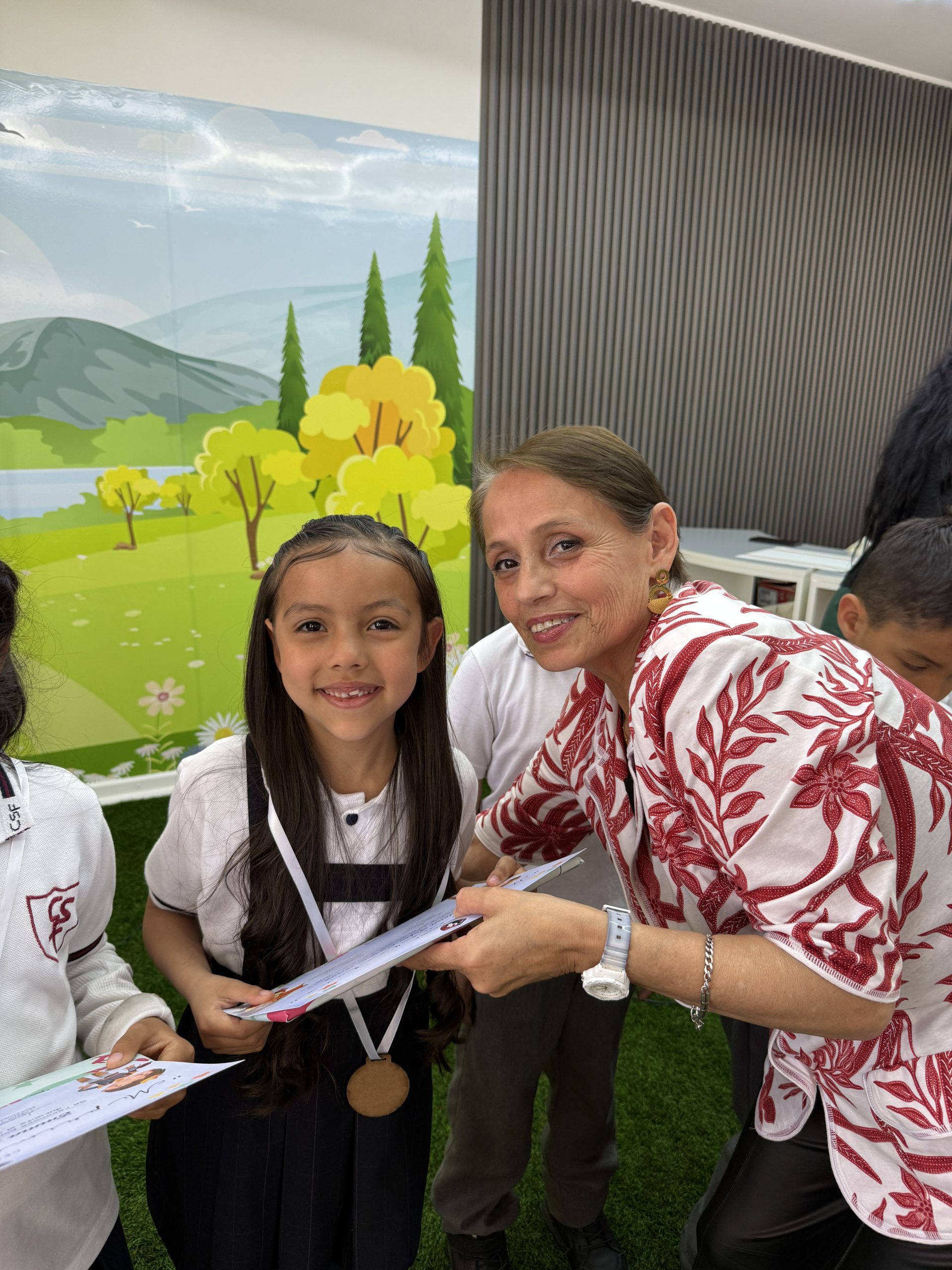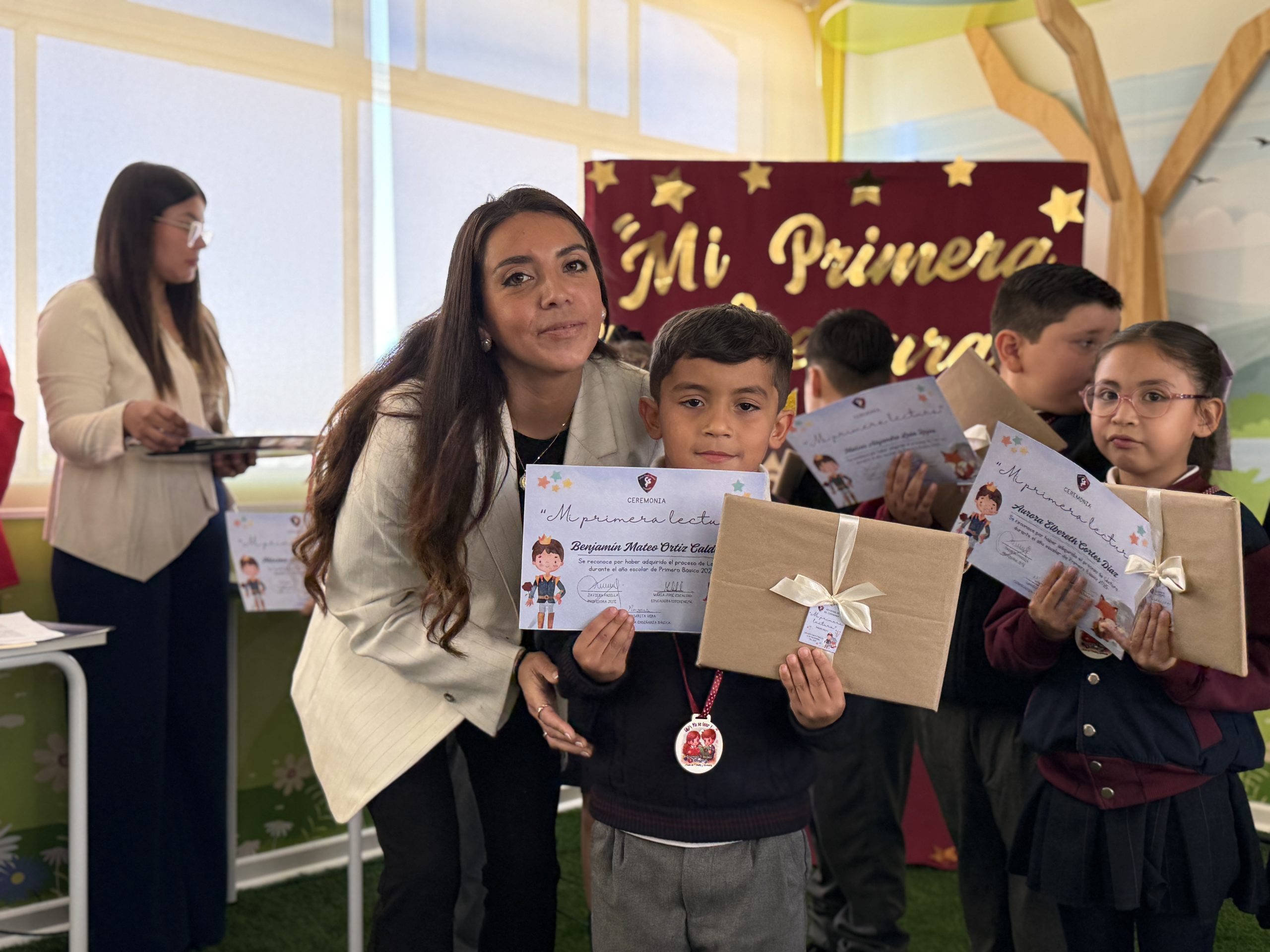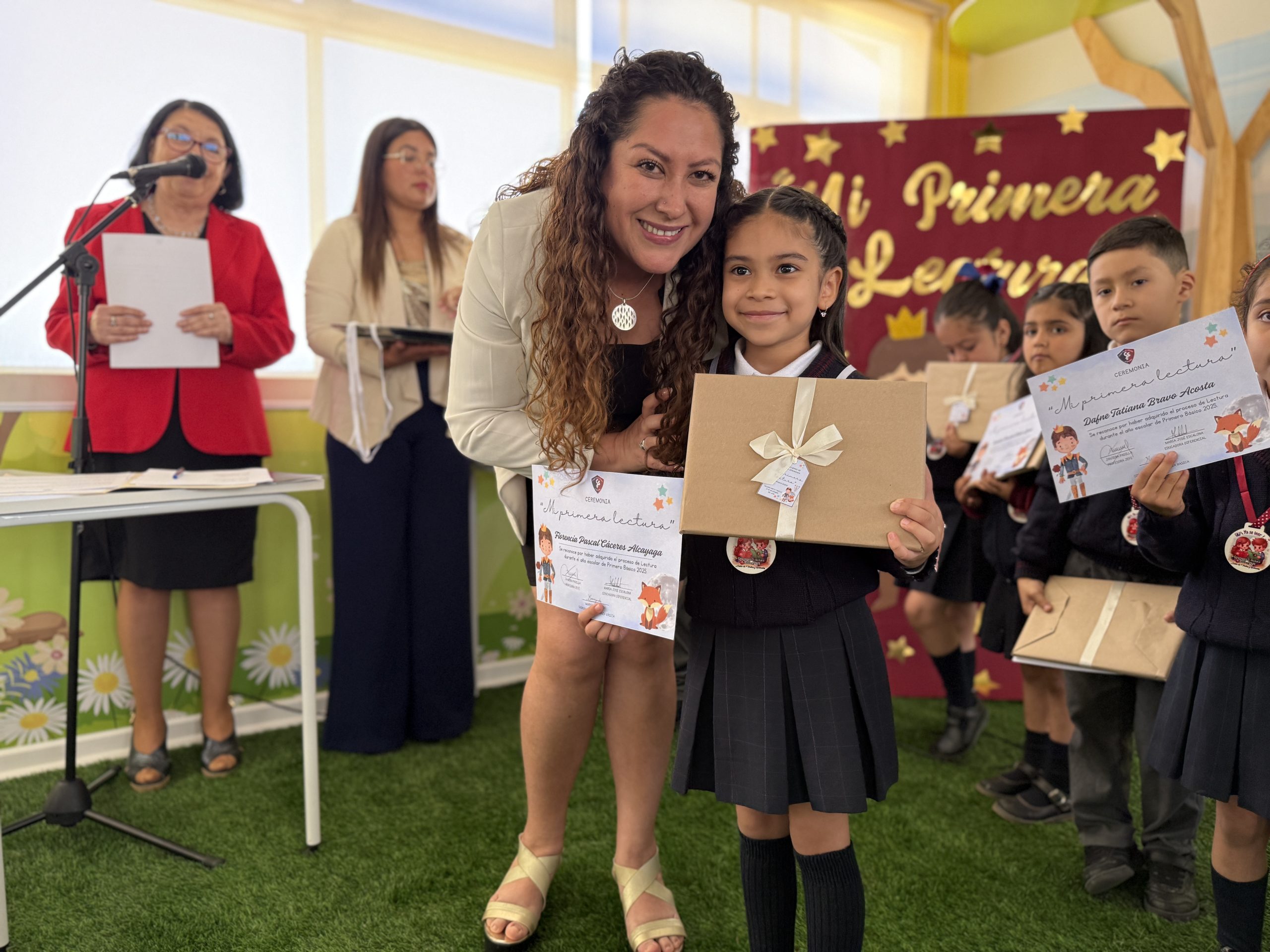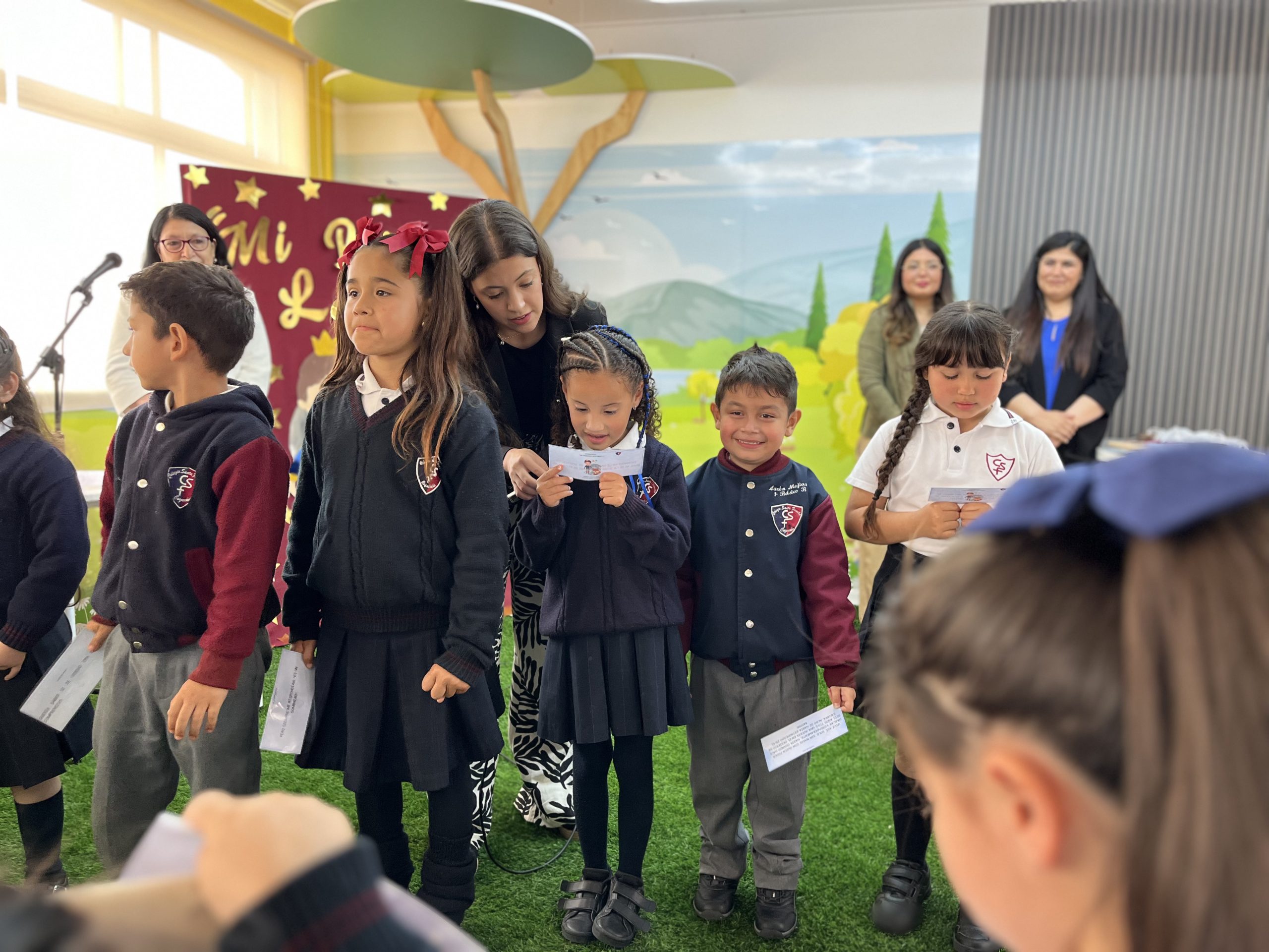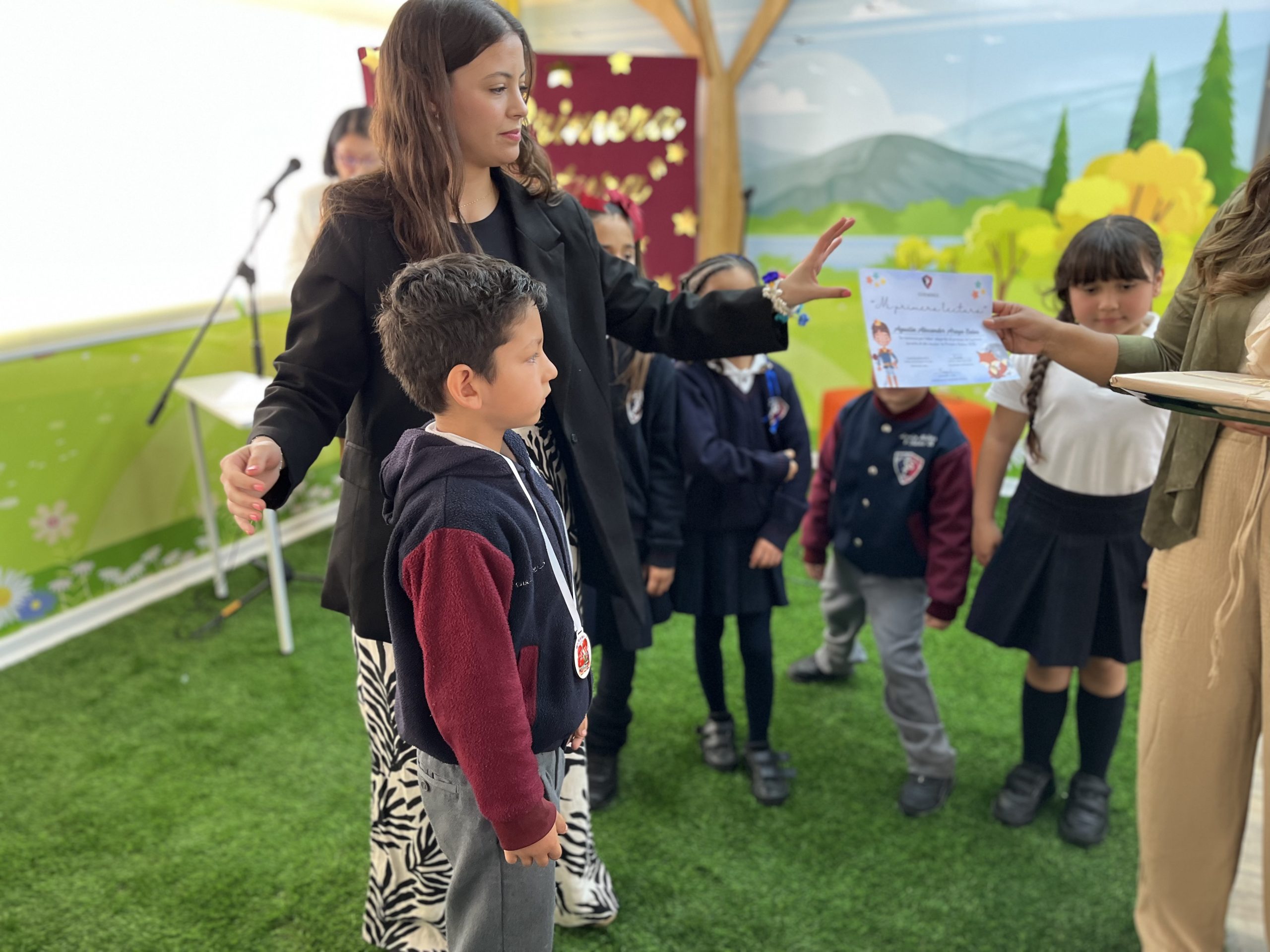 Reconocimiento al esfuerzo, acompañados por su profesoras jefes y el equipo de aula, los estudiantes recibieron diplomas y medallas de manos de nuestra Coordinadora de Ciclo, Sra. Margarita Vera. Estos símbolos no solo premiaron la adquisición de la lectura, sino también la perseverancia demostrada durante todo el proceso académico.